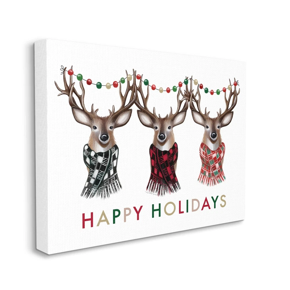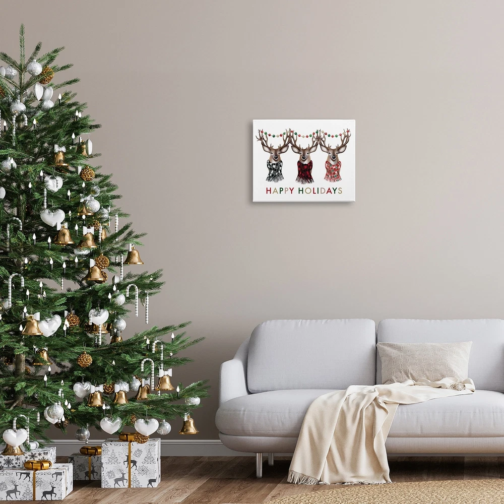 Proudly made in the USA, Our stretched canvas is created with the highest standards. We use only the highest quality inks and canvas on our in house Mimaki printers, and then hand cut and stretch each piece over a 1.5 inch thick wooden frame for hanging. The art comes ready to hang with no installation required.Features:Wall Art is Ready to Hang - No Installation or Hardware Needed. For Easy Set Up Lean or Layer Artwork on Shelf or Against Wall.Our stretched canvas is created with the highest standards. We use only the highest quality inks and canvas on our in house Mimaki printers, and then hand cut and stretch each piece over a 1.5 inch thick wooden frame for hanging. Made In USA.Artwork Ideal for any Living Room, Den, Entryway, Bedroom, Office, Kitchen or Bathroom.Design by Elizabeth Free Shipping Over $49.99* Details Stupell Happy Holidays Christmas Reindeer Antlers Plaid Scarf Canvas Wall Art - Product Description: Proudly made in the USA, Our stretched canvas is created with the highest standards. We use only the highest quality inks and canvas on our in house Mimaki printers, and then hand cut and stretch each piece over a 1.5 inch thick wooden frame for hanging. The art comes ready to hang with no installation required. Features: Wall Art is Ready to Hang - No Installation or Hardware Needed. For Easy Set Up Lean or Layer Artwork on Shelf or Against Wall. Our stretched canvas is created with the highest standards. We use only the highest quality inks and canvas on our in house Mimaki printers, and then hand cut and stretch each piece over a 1.5 inch thick wooden frame for hanging. Made In USA. Artwork Ideal for any Living Room, Den, Entryway, Bedroom, Office, Kitchen or Bathroom. Design by Elizabeth Tyndall
