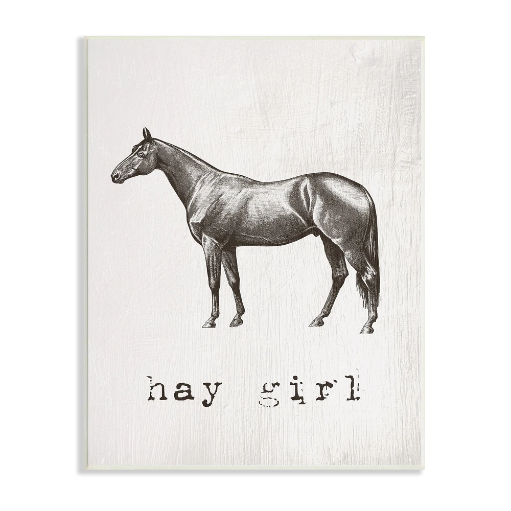 Proudly made in the USA, all of All of our wall plaques start off as high quality lithograph prints that are then mounted on durable 0.5 inch thick MDF wood. Each piece is hand finished and comes with a fresh layer of foil on the sides to give it a crisp clean look. It arrives ready to hang with no installation required, and comes with sturdy clear corners to keep it from damaging in transit.Features:Wall Art is Ready to Hang - No Installation or Hardware Needed. For Easy Set Up Lean or Layer Artwork on Shelf or Against Wall.All of our wall plaques start off as high quality lithograph prints that are then mounted on durable 0.5 inch thick MDF wood. Each piece is hand finished and comes with a fresh layer of foil on the sides to give it a crisp clean look. Made In USA.Artwork Ideal for any Free Shipping Over $49.99* Details Stupell Hay Girl Funny Horse Pun Vintage Equestrian Portrait Wood Wall Art - Product Description: Proudly made in the USA, all of All of our wall plaques start off as high quality lithograph prints that are then mounted on durable 0.5 inch thick MDF wood. Each piece is hand finished and comes with a fresh layer of foil on the sides to give it a crisp clean look. It arrives ready to hang with no installation required, and comes with sturdy clear corners to keep it from damaging in transit. Features: Wall Art is Ready to Hang - No Installation or Hardware Needed. For Easy Set Up Lean or Layer Artwork on Shelf or Against Wall. All of our wall plaques start off as high quality lithograph prints that are then mounted on durable 0.5 inch thick MDF wood. Each piece is hand finished and comes with a fresh layer of foil on the sides to give it a crisp clean look. Made In USA. Artwork Ideal for any Living Room, Den, Entryway, Bedroom, Office, Kitchen or Bathroom. Design by Daphne Polselli