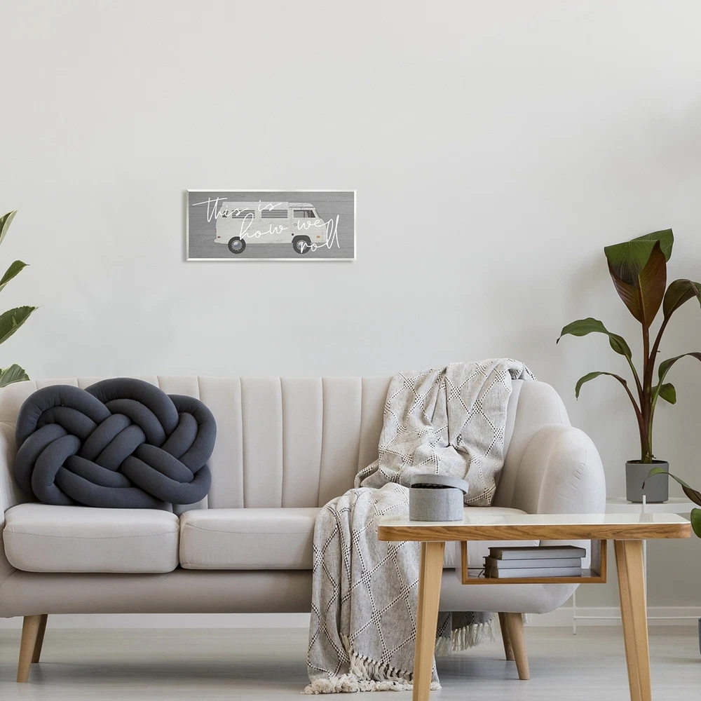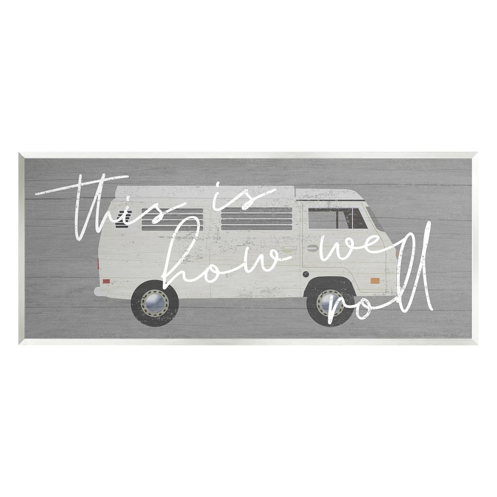 Proudly made in the USA, all of our wall plaques start off as high quality lithograph prints that are then mounted on durable 0.5 inch thick MDF wood. Each piece is hand finished and comes with a fresh layer of foil on the sides to give it a crisp clean look. It arrives ready to hang with no installation required, and comes with sturdy clear corners to keep it from damaging in transit.Features: Wall Art is Ready to Hang - No Installation or Hardware Needed. For Easy Set Up Lean or Layer Artwork on Shelf or Against Wall.All of our wall plaques start off as high quality lithograph prints that are then mounted on durable 0.5 inch thick MDF wood. Each piece is hand finished and comes with a fresh layer of foil on the sides to give it a crisp clean look. Made In USA.Artwork Relates To: Van; Free Shipping Over $49.99* Details Stupell How We Roll Vintage Van Bus Travel Calligraphy Wood Wall Art, Design by Product Description: Proudly made in the USA, all of our wall plaques start off as high quality lithograph prints that are then mounted on durable 0.5 inch thick MDF wood. Each piece is hand finished and comes with a fresh layer of foil on the sides to give it a crisp clean look. It arrives ready to hang with no installation required, and comes with sturdy clear corners to keep it from damaging in transit. Features: Wall Art is Ready to Hang - No Installation or Hardware Needed. For Easy Set Up Lean or Layer Artwork on Shelf or Against Wall. All of our wall plaques start off as high quality lithograph prints that are then mounted on durable 0.5 inch thick MDF wood. Each piece is hand finished and comes with a fresh layer of foil on the sides to give it a crisp clean look. Made In USA. Artwork Relates ToVan; Vehicle; Transportation; Bus; Car; Automobile Design by Daphne Polselli