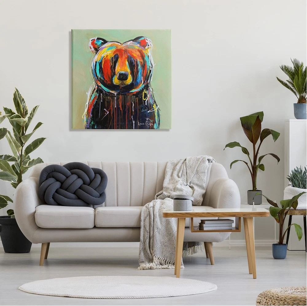 Stupell Industries Abstract Urban Bear Graffiti Canvas Wall Art, Design by Karrie Evenson Product Details Size: 30 x 30 Brand: Stupell Industries UPC: 197658705750 EAN: 0197658705750 MPN: Does not apply Item Dimensions L x W: 30"L x 30"W Size: 30 x 30 Manufacturer: Stupell Industries UPC: 197658705750 Number of Items: 1 Brand: Stupell Industries Mounting Type: Wall Mount Is Framed: No Additional Features: Unframed Frame Type: Wrapped Canvas Room Type: Living Room, Den, Hallway, Office, Entryway, Study, Dining Room or Bedroom, Guest Room, Studio, Dorm or Boudoir Character: Bear Pattern: Abstract Seasons: No Season Wall Art Form: Painting Color: Gallery Wrapped Canvas Style Name: Modern & Contemporary Orientation: Square Item Shape: Square Theme: Animal Frame Material: Wood Material Type: Canvas Stretched Canvas Sizes Include Standard: 17 x 1.5 x 17 Large: 24 x 1.5 x 24 X-Large: 30 x 1.5 x 30 Oversized: 36 x 1.5 x 36 Wall Art is Ready to Hang - No Installation or Hardware Needed. For Easy Set Up Lean or Layer Artwork on Shelf or Against Wall. Our stretched canvas is created with the highest standards. We use only the highest quality inks and canvas on our in house Mimaki printers, and then hand cut and stretch each piece over a 1.5 inch thick wooden frame for hanging. Made In USA. Artwork Relates To: Painting, Modern, Animal, Mammal, Wildlife, Bear, Brown Bear, Abstract Design by Karrie Evenson Proudly made in the USA, Our stretched canvas is created with the highest standards. We use only the highest quality inks and canvas on our in house Mimaki printers, and then hand cut and stretch each piece over a 1.5 inch thick wooden frame for hanging. The art comes ready to hang with no installation required. Room Type: Living Room, Den, Hallway, Office, Entryway, Study, Dining Room or Bedroom, Guest Room, Studio, Dorm or Boudoir