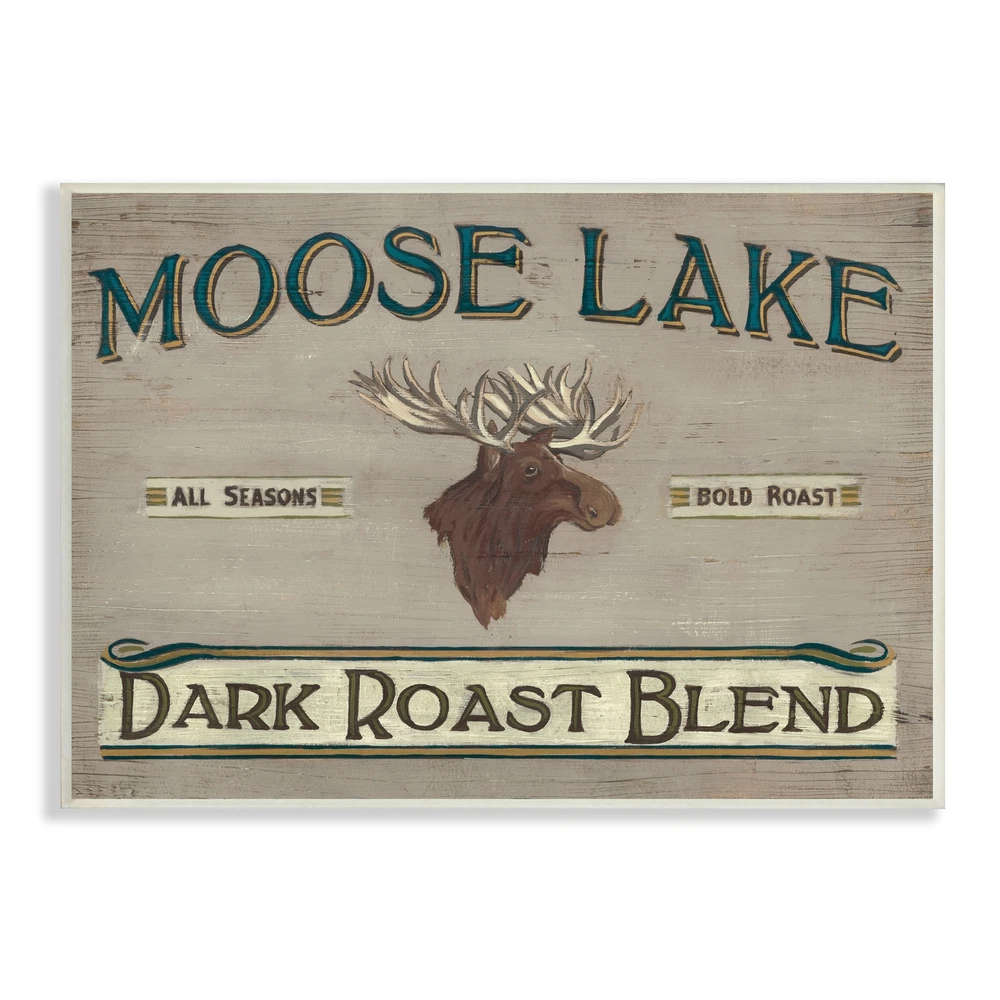 Proudly made in the USA, all of All of our wall plaques start off as high quality lithograph prints that are then mounted on durable 0.5 inch thick MDF wood. Each piece is hand finished and comes with a fresh layer of foil on the sides to give it a crisp clean look. It arrives ready to hang with no installation required, and comes with sturdy clear corners to keep it from damaging in transit.Features:Wall Art is Ready to Hang - No Installation or Hardware Needed. For Easy Set Up Lean or Layer Artwork on Shelf or Against Wall.All of our wall plaques start off as high quality lithograph prints that are then mounted on durable 0.5 inch thick MDF wood. Each piece is hand finished and comes with a fresh layer of foil on the sides to give it a crisp clean look. Made In USA.Artwork Ideal for any Free Shipping Over $49.99* Details Stupell Moose Lake Dark Roast Coffee Blend Sign Vintage Animal Wood Wall Art Product Description: Proudly made in the USA, all of All of our wall plaques start off as high quality lithograph prints that are then mounted on durable 0.5 inch thick MDF wood. Each piece is hand finished and comes with a fresh layer of foil on the sides to give it a crisp clean look. It arrives ready to hang with no installation required, and comes with sturdy clear corners to keep it from damaging in transit. Features: Wall Art is Ready to Hang - No Installation or Hardware Needed. For Easy Set Up Lean or Layer Artwork on Shelf or Against Wall. All of our wall plaques start off as high quality lithograph prints that are then mounted on durable 0.5 inch thick MDF wood. Each piece is hand finished and comes with a fresh layer of foil on the sides to give it a crisp clean look. Made In USA. Artwork Ideal for any Living Room, Den, Entryway, Bedroom, Office, Kitchen or Bathroom. Design by June Erica Vess