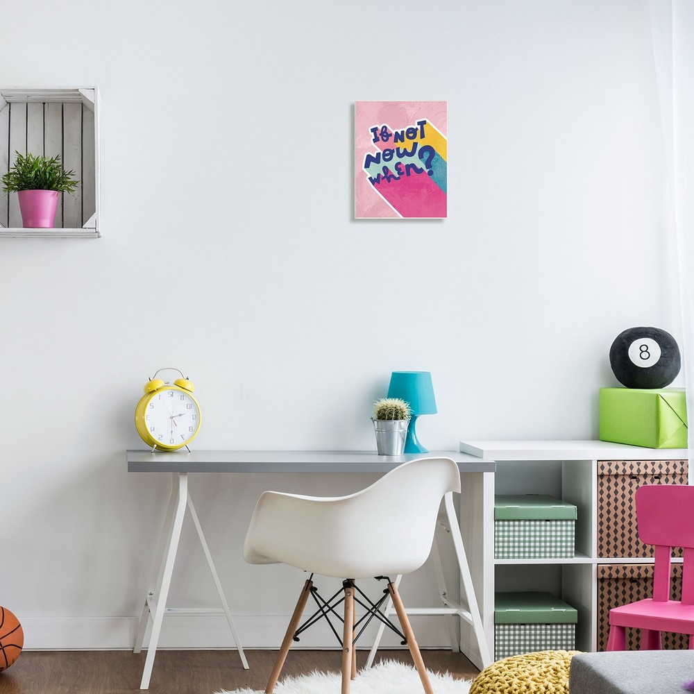 Proudly made in the USA, all of All of our wall plaques start off as high quality lithograph prints that are then mounted on durable 0.5 inch thick MDF wood. Each piece is hand finished and comes with a fresh layer of foil on the sides to give it a crisp clean look. It arrives ready to hang with no installation required, and comes with sturdy clear corners to keep it from damaging in transit.Features:Wall Art is Ready to Hang - No Installation or Hardware Needed. For Easy Set Up Lean or Layer Artwork on Shelf or Against Wall.All of our wall plaques start off as high quality lithograph prints that are then mounted on durable 0.5 inch thick MDF wood. Each piece is hand finished and comes with a fresh layer of foil on the sides to give it a crisp clean look. Made In USA.Artwork Ideal for any Free Shipping Over $49.99* Details Stupell If Not Now When Motivational Phrase Fun Pop Typography Wood Wall Art - Product Description: Proudly made in the USA, all of All of our wall plaques start off as high quality lithograph prints that are then mounted on durable 0.5 inch thick MDF wood. Each piece is hand finished and comes with a fresh layer of foil on the sides to give it a crisp clean look. It arrives ready to hang with no installation required, and comes with sturdy clear corners to keep it from damaging in transit. Features: Wall Art is Ready to Hang - No Installation or Hardware Needed. For Easy Set Up Lean or Layer Artwork on Shelf or Against Wall. All of our wall plaques start off as high quality lithograph prints that are then mounted on durable 0.5 inch thick MDF wood. Each piece is hand finished and comes with a fresh layer of foil on the sides to give it a crisp clean look. Made In USA. Artwork Ideal for any Living Room, Den, Entryway, Bedroom, Office, Kitchen or Bathroom. Design by Andrea Jasid Grassi