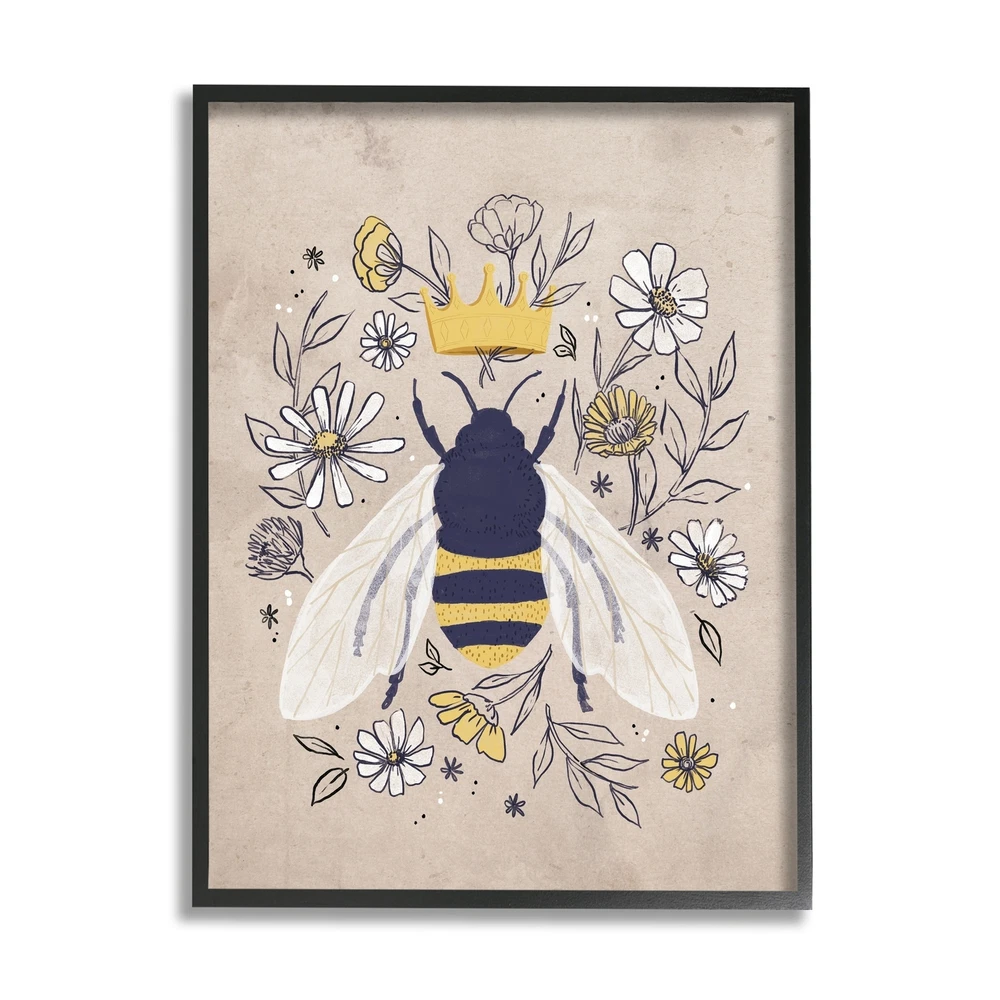 It is time to set up your room with of our fresh new 'Framed Giclee Textured Wall Art' pieces. You may have seen our Wooden or Canvas products, but our framed products are now available in three alluring styles: black, gray farmhouse and white. Our textured artwork will add more depth and dimension to any space. Each piece is mounted with a 1.5 inch thick ebony wood grain frame that is ready to hang! Looking for a statement piece? We have oversized artwork available.Features: Wall Art is Ready to Hang - No Installation or Hardware Needed. For Easy Set Up Lean or Layer Artwork on Shelf or Against Wall.Our giclée prints are carefully mounted on a durable MDF backing, and then perfectly finished in a 1.5 inch thick woodgrain frame. Frame colors include black, gray farmhouse and white. Made In Free Shipping Over $49.99* Details Stupell Queen Bee with Crown Yellow White Daisy Florals Framed Wall Art Product Description: It is time to set up your room with of our fresh new 'Framed Giclee Textured Wall Art' pieces. You may have seen our Wooden or Canvas products, but our framed products are now available in three alluring stylesblack, gray farmhouse and white. Our textured artwork will add more depth and dimension to any space. Each piece is mounted with a 1.5 inch thick ebony wood grain frame that is ready to hang! Looking for a statement piece? We have oversized artwork available. Features: Wall Art is Ready to Hang - No Installation or Hardware Needed. For Easy Set Up Lean or Layer Artwork on Shelf or Against Wall. Our giclée prints are carefully mounted on a durable MDF backing, and then perfectly finished in a 1.5 inch thick woodgrain frame. Frame colors include black, gray farmhouse and white. Made In USA. Artwork Ideal for any Living Room, Den, Entryway, Bedroom, Office, Kitchen or Bathroom. Design by Loni Harris