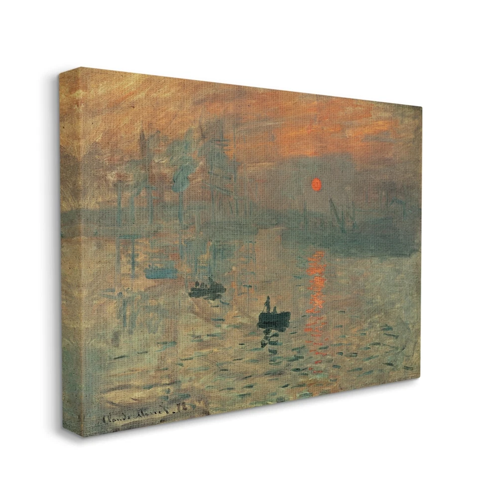 Proudly made in the USA, our stretched canvas is created with only the highest standards. We print with high quality inks and canvas, and then hand cut and stretch it over a 1.5 inch thick wooden frame. The art comes ready to hang with no installation required.Features:Wall Art is Ready to Hang - No Installation or Hardware Needed. For Easy Set Up Lean or Layer Artwork on Shelf or Against Wall.Our stretched canvas is created with the highest standards. We use only the highest quality inks and canvas on our in house Mimaki printers, and then hand cut and stretch each piece over a 1.5 inch thick wooden frame for hanging. Made In USA.Artwork Ideal for any Living Room, Den, Entryway, Bedroom, Office, Kitchen or Bathroom.Design by Claude Monet Free Shipping Over $49.99* Details Stupell Traditional Painting Impression Brouillard Monet Canvas Wall Art Product Description: Proudly made in the USA, our stretched canvas is created with only the highest standards. We print with high quality inks and canvas, and then hand cut and stretch it over a 1.5 inch thick wooden frame. The art comes ready to hang with no installation required. Features: Wall Art is Ready to Hang - No Installation or Hardware Needed. For Easy Set Up Lean or Layer Artwork on Shelf or Against Wall. Our stretched canvas is created with the highest standards. We use only the highest quality inks and canvas on our in house Mimaki printers, and then hand cut and stretch each piece over a 1.5 inch thick wooden frame for hanging. Made In USA. Artwork Ideal for any Living Room, Den, Entryway, Bedroom, Office, Kitchen or Bathroom. Design by Claude Monet