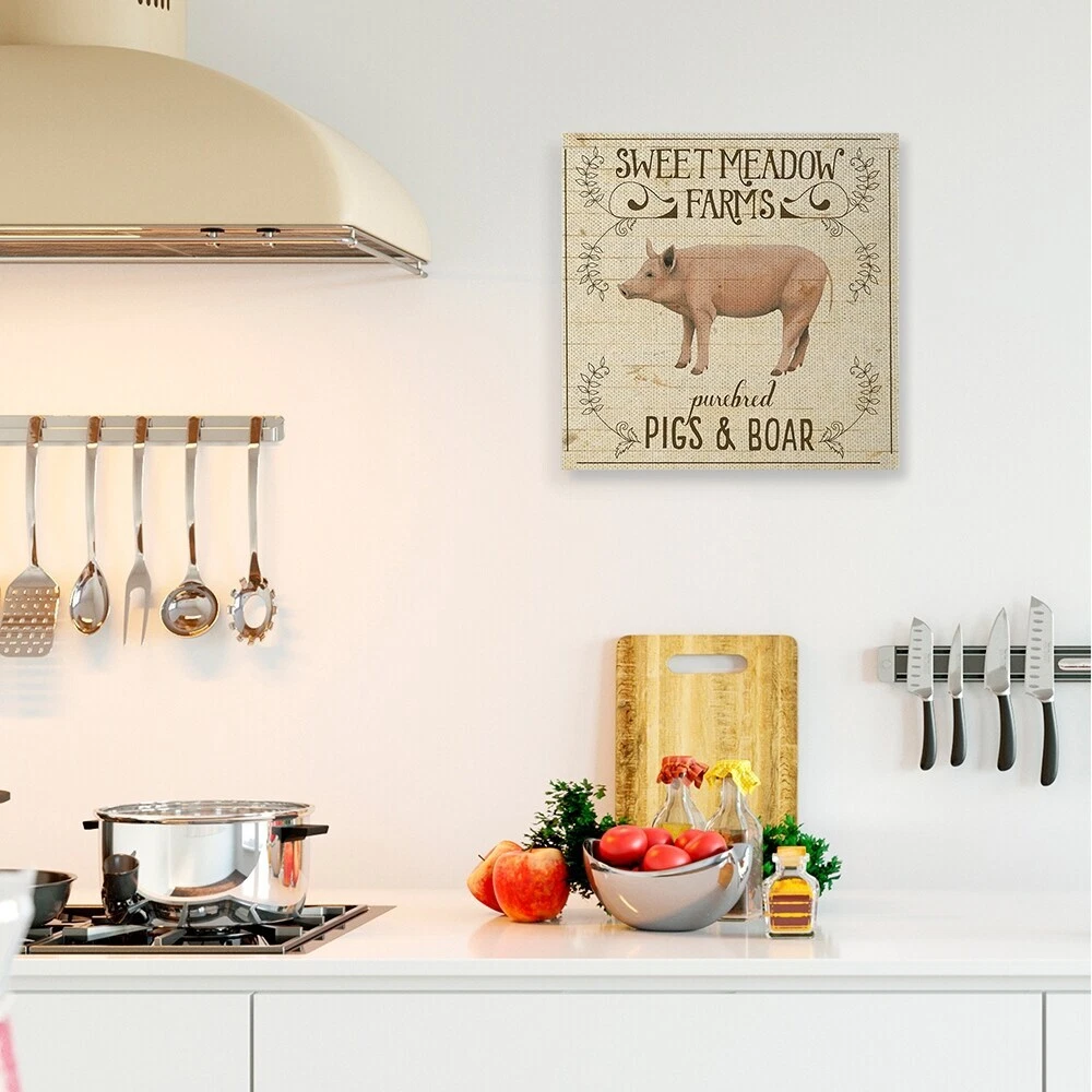 Proudly made in the USA, our stretched canvas is created with only the highest standards. We print with high quality inks and canvas, and then hand cut and stretch it over a 1.5 inch thick wooden frame. The art comes ready to hang with no installation required.Features:Wall Art is Ready to Hang - No Installation or Hardware Needed. For Easy Set Up Lean or Layer Artwork on Shelf or Against Wall.Our stretched canvas is created with the highest standards. We use only the highest quality inks and canvas on our in house Mimaki printers, and then hand cut and stretch each piece over a 1.5 inch thick wooden frame for hanging. Made In USA.Artwork Ideal for any Living Room, Den, Entryway, Bedroom, Office, Kitchen or Bathroom.Design by Grace Popp Free Shipping Over $49.99* Details Stupell Vintage Farm Pig Advertisement Tan Beige Canvas Wall Art Product Description: Proudly made in the USA, our stretched canvas is created with only the highest standards. We print with high quality inks and canvas, and then hand cut and stretch it over a 1.5 inch thick wooden frame. The art comes ready to hang with no installation required. Features: Wall Art is Ready to Hang - No Installation or Hardware Needed. For Easy Set Up Lean or Layer Artwork on Shelf or Against Wall. Our stretched canvas is created with the highest standards. We use only the highest quality inks and canvas on our in house Mimaki printers, and then hand cut and stretch each piece over a 1.5 inch thick wooden frame for hanging. Made In USA. Artwork Ideal for any Living Room, Den, Entryway, Bedroom, Office, Kitchen or Bathroom. Design by Grace Popp