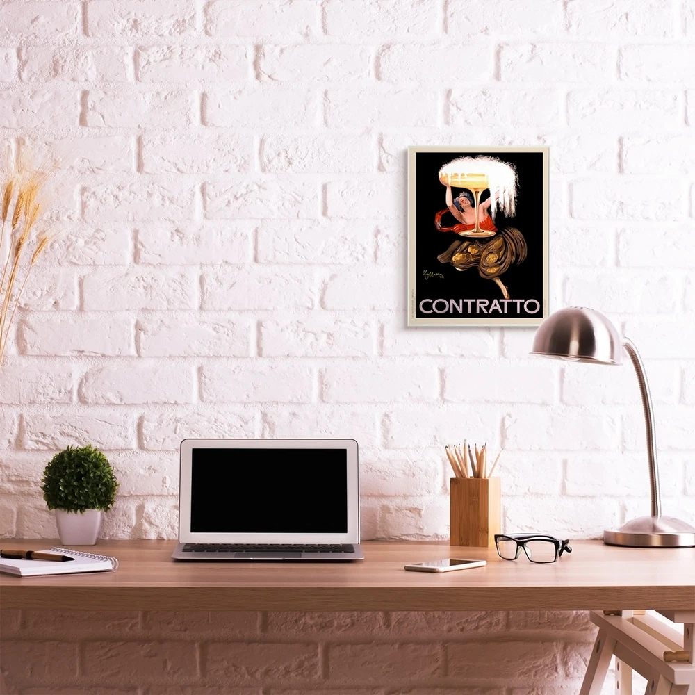 Proudly made in the USA, all of our wall plaques start off as high quality lithograph prints that are then mounted on durable MDF wood. Each piece is hand finished and comes with a fresh layer of foil on the sides to give it a crisp clean look. It arrives ready to hang with no installation required, and comes with sturdy clear corners to keep it from damaging in transit.Features:Wall Art is Ready to Hang - No Installation or Hardware Needed. For Easy Set Up Lean or Layer Artwork on Shelf or Against Wall.All of our wall plaques start off as high quality lithograph prints that are then mounted on durable 0.5 inch thick MDF wood. Each piece is hand finished and comes with a fresh layer of foil on the sides to give it a crisp clean look. Made In USA.Artwork Ideal for any Living Room, Den, Free Shipping Over $49.99* Details Stupell Vintage Vermouth Cocktail Illustrative Advertisement Contratto Wood Wall Product Description: Proudly made in the USA, all of our wall plaques start off as high quality lithograph prints that are then mounted on durable MDF wood. Each piece is hand finished and comes with a fresh layer of foil on the sides to give it a crisp clean look. It arrives ready to hang with no installation required, and comes with sturdy clear corners to keep it from damaging in transit. Features: Wall Art is Ready to Hang - No Installation or Hardware Needed. For Easy Set Up Lean or Layer Artwork on Shelf or Against Wall. All of our wall plaques start off as high quality lithograph prints that are then mounted on durable 0.5 inch thick MDF wood. Each piece is hand finished and comes with a fresh layer of foil on the sides to give it a crisp clean look. Made In USA. Artwork Ideal for any Living Room, Den, Entryway, Bedroom, Office, Kitchen or Bathroom. Design by Anonymous