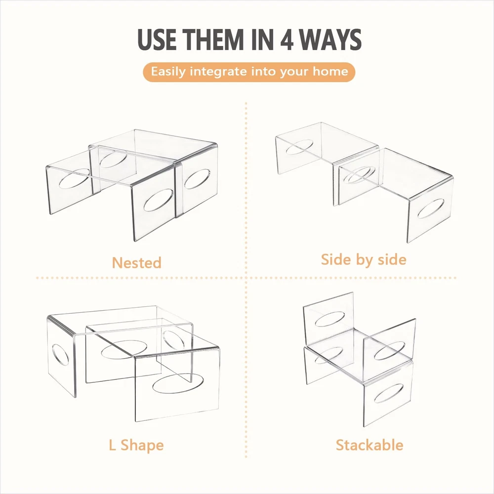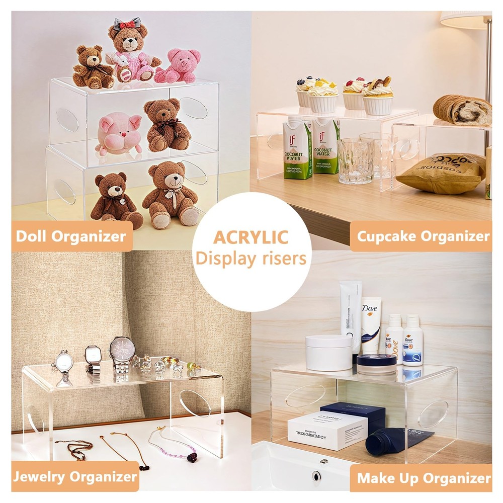 Product Description: Transform your living spaces with our Multipurpose Home Organizer – a versatile storage solution that caters to various household needs. Whether you're organizing your kitchen utensils, spices, cosmetics, skincare products, or even creating a stylish display in your bedroom or office, this organizadores de cocina has you covered. Featuring a space-saving design, it maximizes vertical storage, allowing you to stack, separate, or nest the shelves to suit your requirements. With a maximum load capacity of 16 lbs per shelf, it ensures durability and stability. The acrylic one-piece molding design is not only sturdy but also aesthetically pleasing, requiring no installation and easy to clean. This organizer is ideal for multiple scenarios, from elevating your kitchen counter or bathroom vanity to organizing your coffee bar, bedroom desk, or even laundry room. Its multi-purpose functionality makes it a wonderful gift idea for any occasion, offering both practicality and elegance. Experience seamless organization and enhanced aesthetics with our Multipurpose Home Organizer today! No installation required - Designed for convenience, the one-piece molding design makes these bathroom organizers and storage shelves incredibly sturdy and beautiful. These cabinet organizer shelf are effortless to clean, maintaining their pristine appearance over time. No installation required; simply place the display cabinet shelf where you need them. Space Saver Design - Ideal for maximizing vertical space, this spice rack can be stacked, nested, separately, or even in an L-shape to fit your specific storage needs. The pantry organizer and storage doubles your storage capacity in cabinets, under sinks, fridge or on countertop, making acrylic shelves perfect for kitchens, bathrooms, offices, and bedrooms, laundry. Plenty of Storage Options - Keep your cooking essentials like spice jars, containers, cans, cutlery, cosmetics, perfumes, coffee beans, and cookbooks organized, visible, and easy to find. The sturdy medicine cabinet organizer can hold up to 16 lbs (7.2 kg) per shelf, ensuring everything stays neatly arranged and within reach. Multi-Purpose Organization - This versatile home organizer is a must-have, designed to meet all your organization needs. Perfect for kitchen utensils, bottles, cans, bowls, plates, pans, soup pots, mug, dish and more. The desk organizer also serves as an excellent countertop organizer for bathroom counters, makeup organizers, skincare products, and vanity essentials. Wonderful Gift - High-quality and versatile, this closet organizer is a thoughtful gift for any occasion. Perfect for Mother's Day, Father's Day, Halloween, Christmas, New Year, weddings, bridal showers, anniversaries, birthdays, Valentine's Day, and more. Elevate your home or office decor while providing practical storage solutions.
