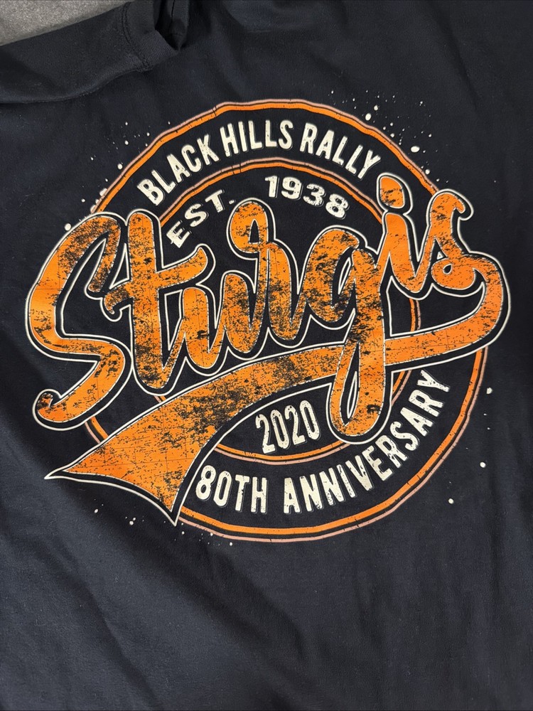 The Sturgis Black Hills Rally 2020 80th Black T Shirt is a regular fit, short sleeve T-shirt made of cotton knit fabric. It features a crew neck and comes in size L, suitable for men. The black shirt carries a motorcycle theme, perfect for the summer, fall, and spring seasons. With the Sturgis brand, this T-shirt is machine washable and represents a timeless piece for biker enthusiasts and fans of the legendary rally.