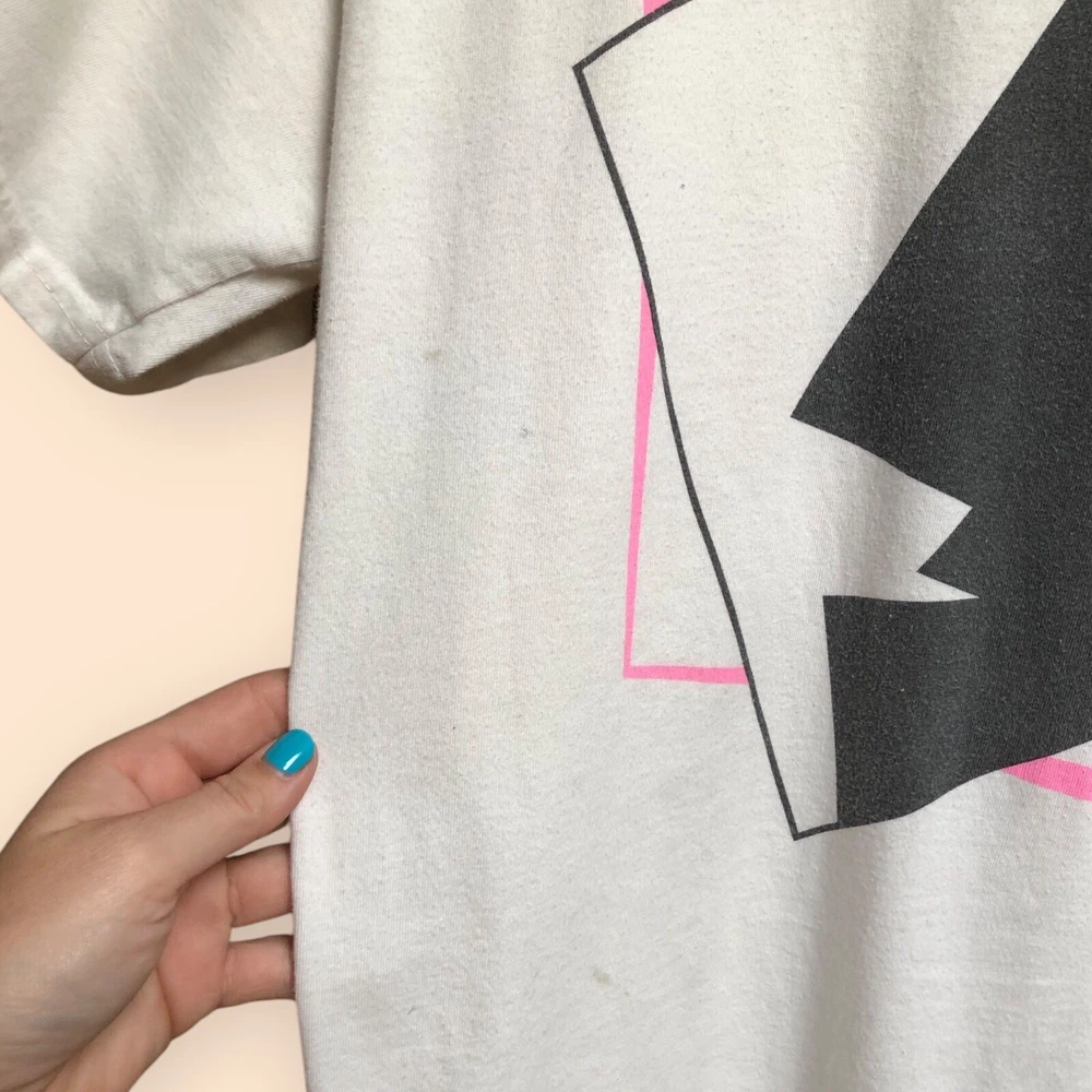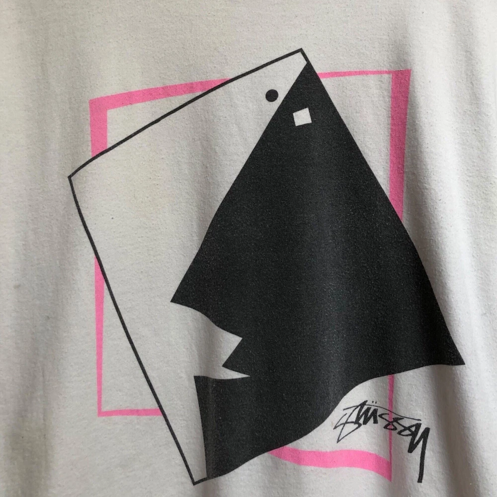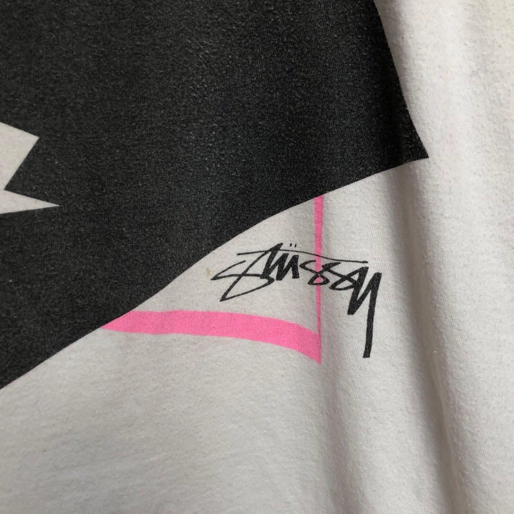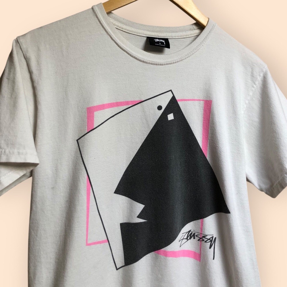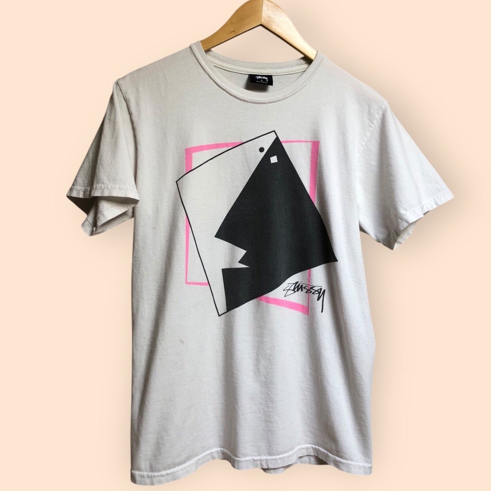 Stussy Abstract Graphic Print T-shirt Unisex Size Small Cotton White Casual Unisex Size Small Measures approx… 25.5 in long / 18.5-19 in pit to pit 100% Cotton Made in Mexico White T-shirt / short sleeved / abstract graphic print on front / black and white and pink / Stussy logo Gently used condition / definitely has some wash wear / some small stains on front (see photos)