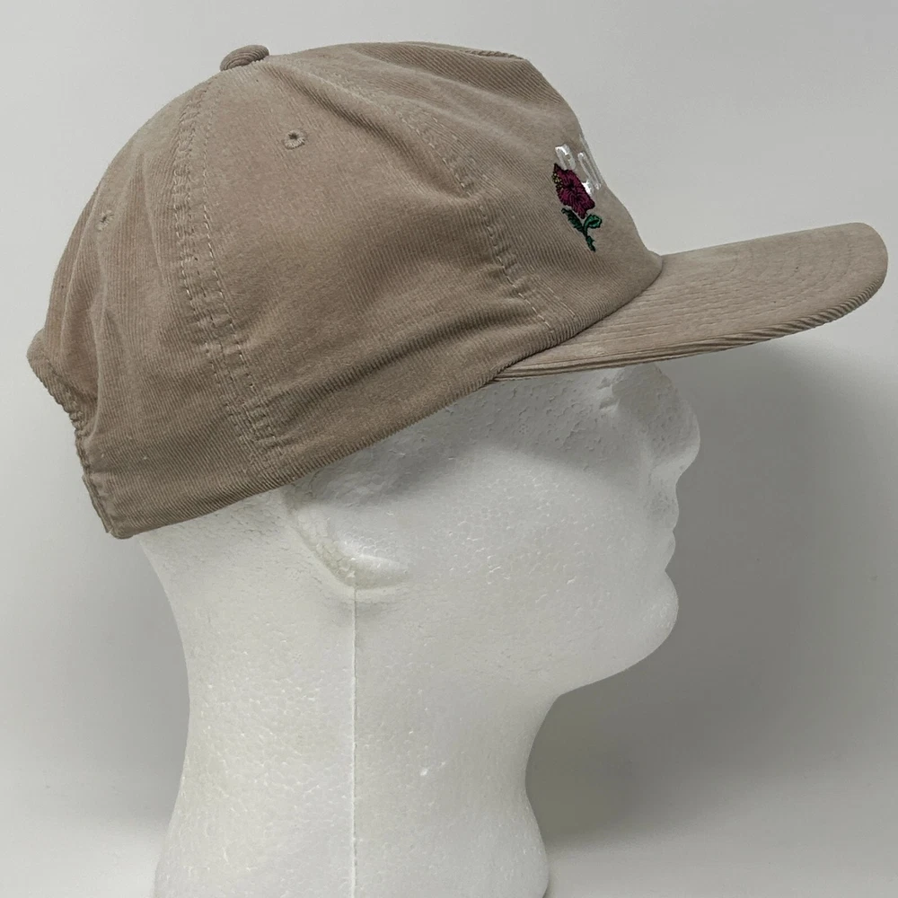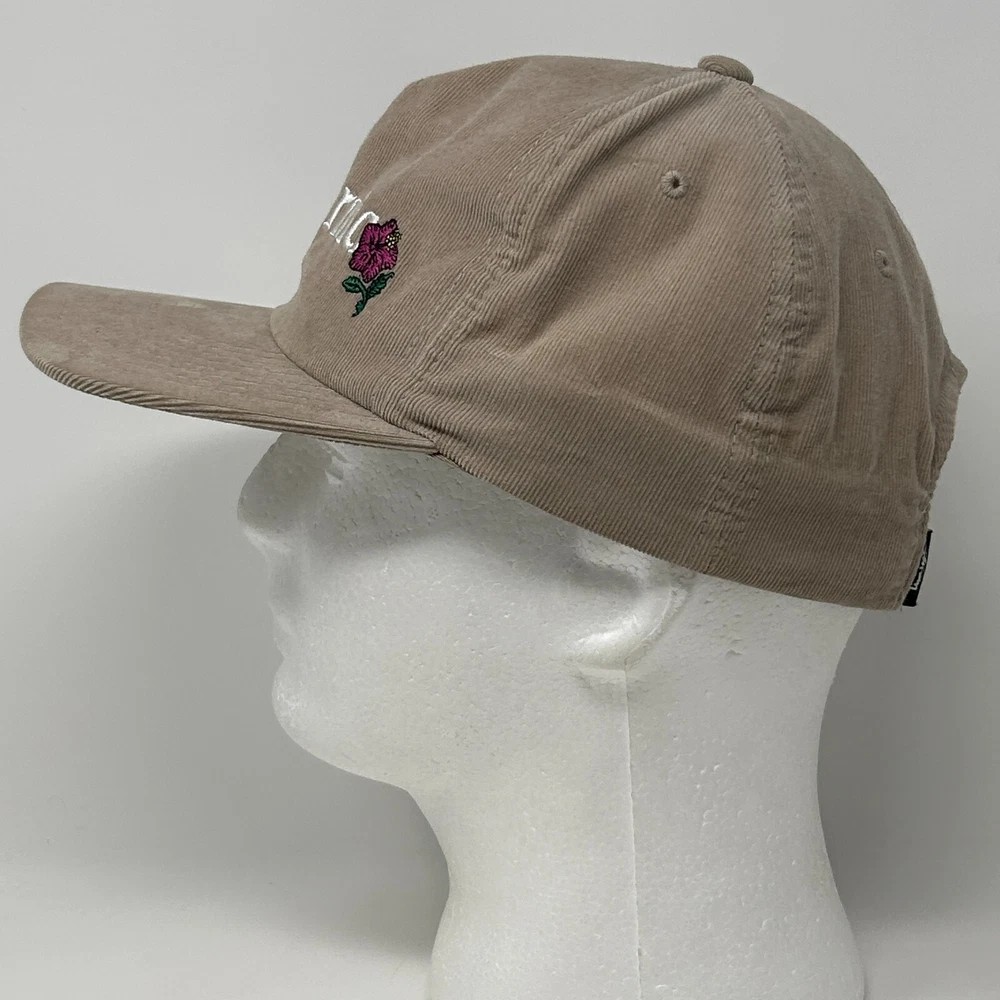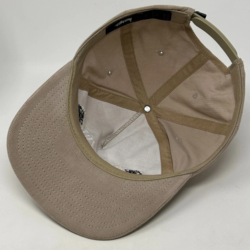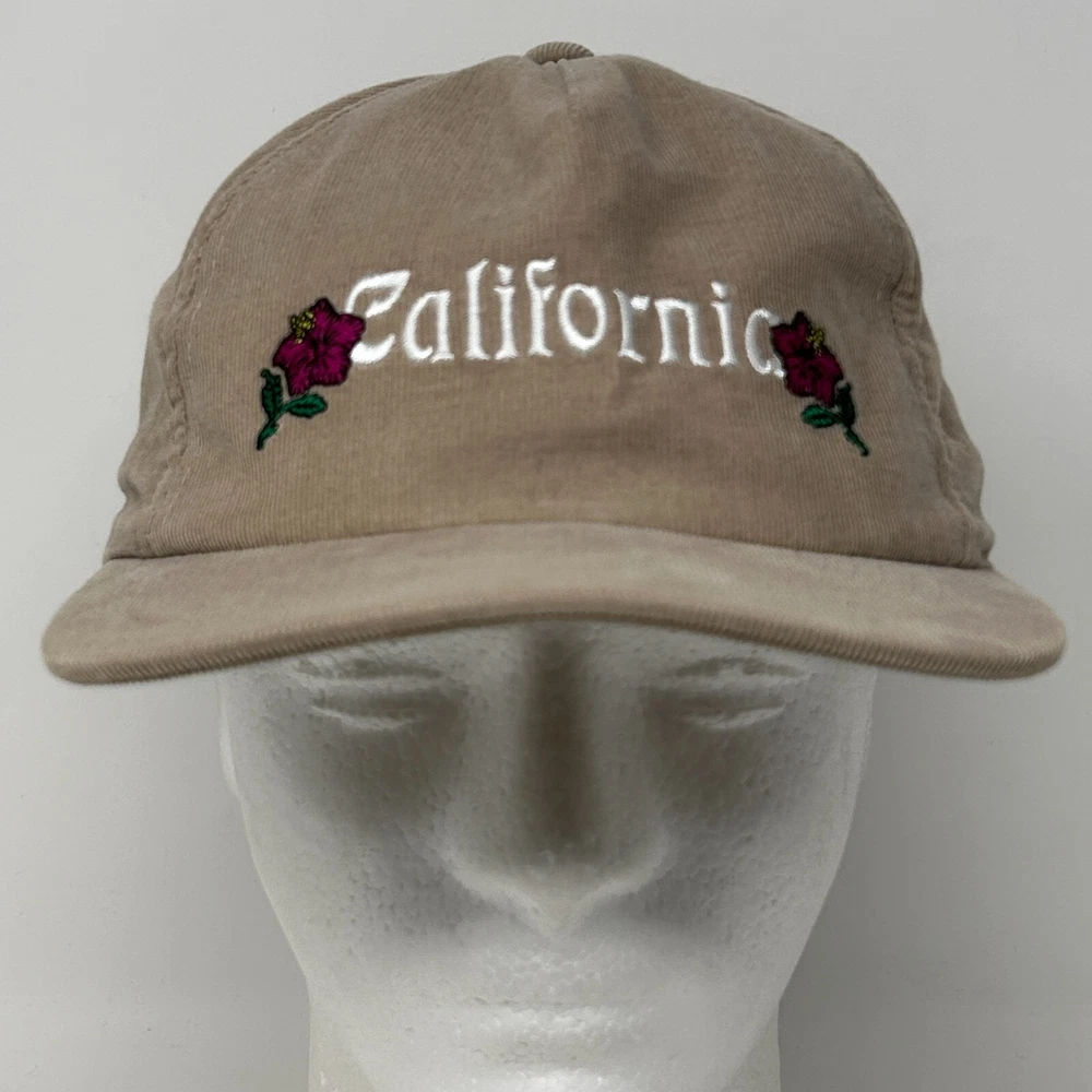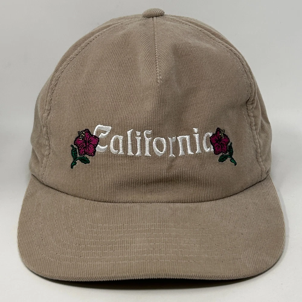 Stussy California Roses Baseball Hat Cap Corduroy Skater Skating Skateboarding Skateboarder Streetwear Five Panel A-Frame Snapback Beige Will be shipped in a box. CONDITION: In gently used condition - no flaws noticed. Has been cleaned and sanitized. See photos.