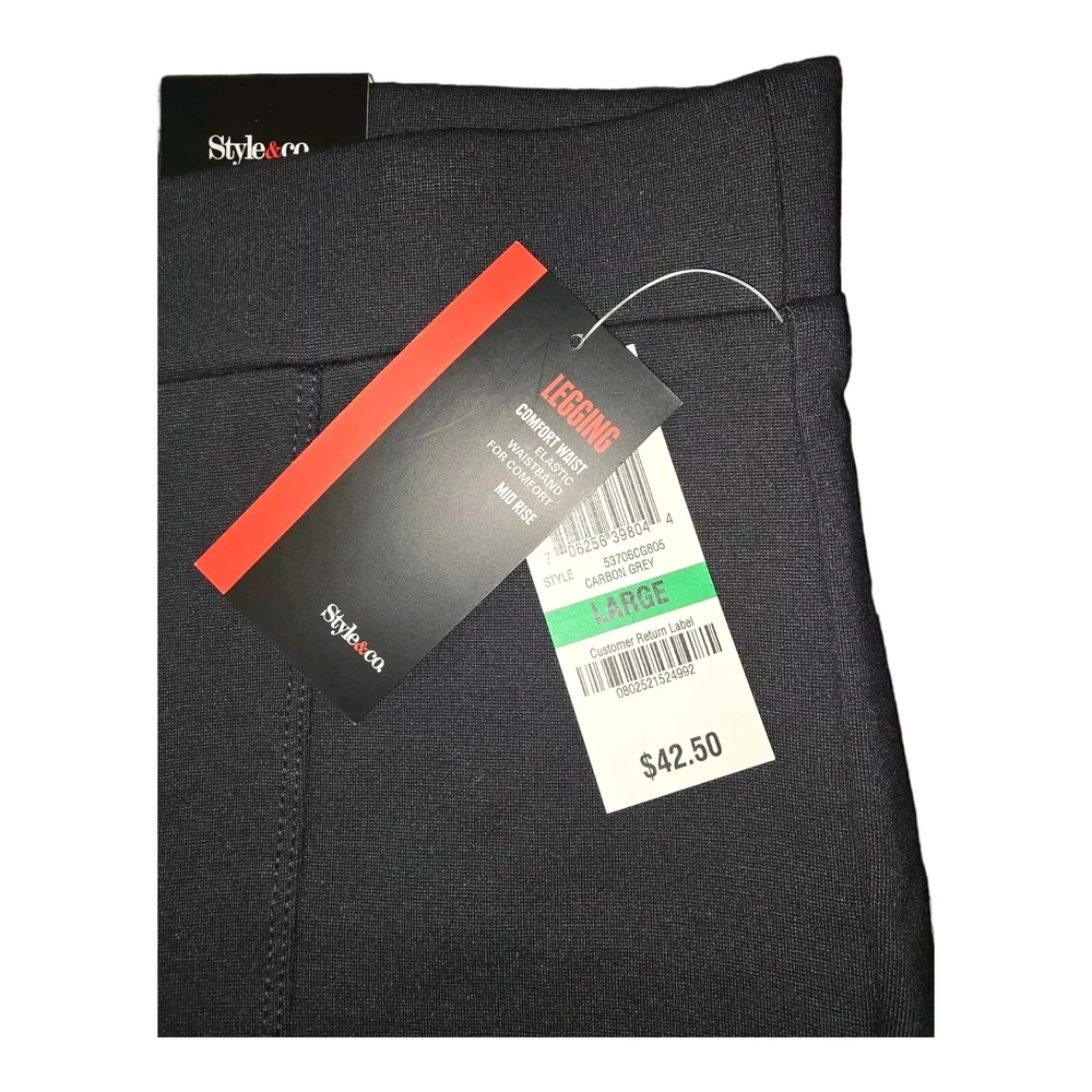 Elevate your wardrobe with Style&co.'s Carbon Grey Mid Rise Leggings, a versatile addition that blends comfort with a touch of sophistication. Designed for the modern woman, these leggings feature an elastic waistband that provides a snug, comfortable fit. They're crafted from a blend of cotton and spandex, ensuring both softness and stretch. With a solid color pattern and a high-rise cut, these leggings can seamlessly transition from a casual daytime look to an evening out. The machine-washable fabric makes care a breeze, so you can keep these staples looking fresh wear after wear. Whether paired with a simple tee or dressed up with a blouse, they're an ideal choice for any season. Our items have been stored in a dust and smoke free environment. The photos are of the actual item and not stock pictures. There may be color, shade and hue variances due to different monitors and device settings. I do my best to take informative photos and to state colors accurately, but different shades of the same color family are subjective at best. Please contact us prior to leaving feedback, regarding questions or concerns, so we can work together to reach an equitable solution. Thanks for looking and know that you can bid with confidence regarding our merchandise and our customer service.