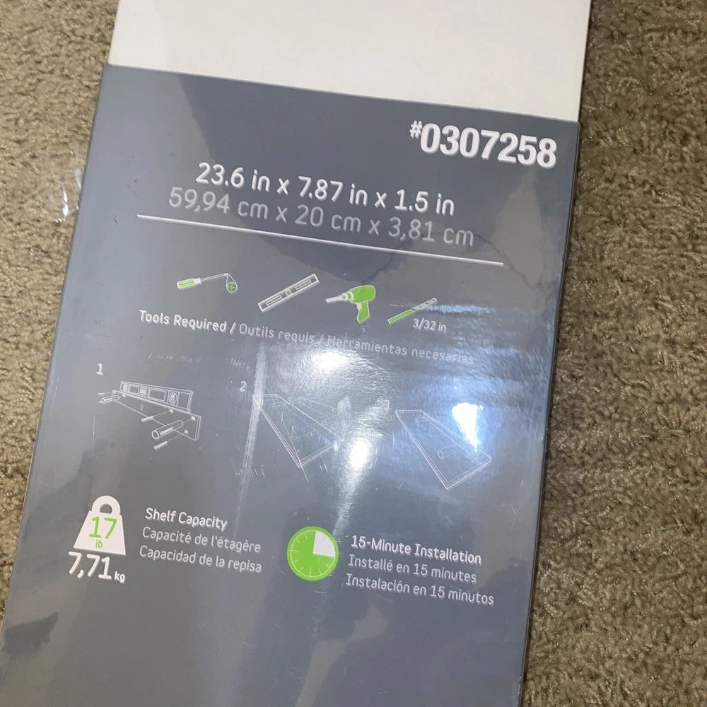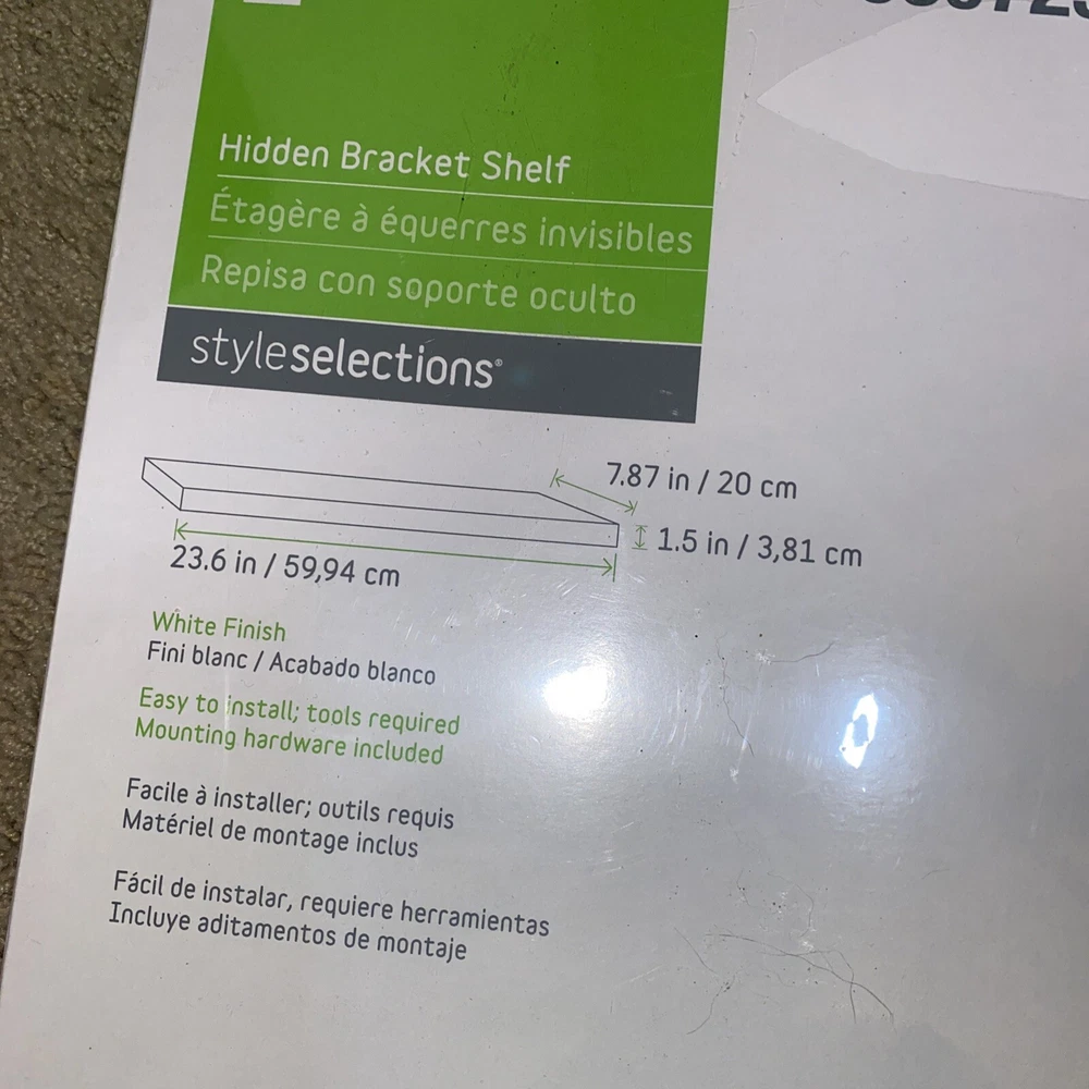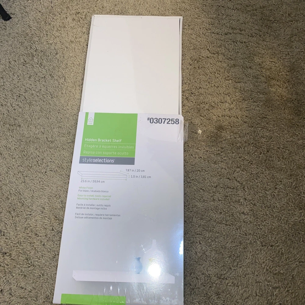 Style Selections White Hidden Bracket Shelf #0307258 23.6" X 7.87".