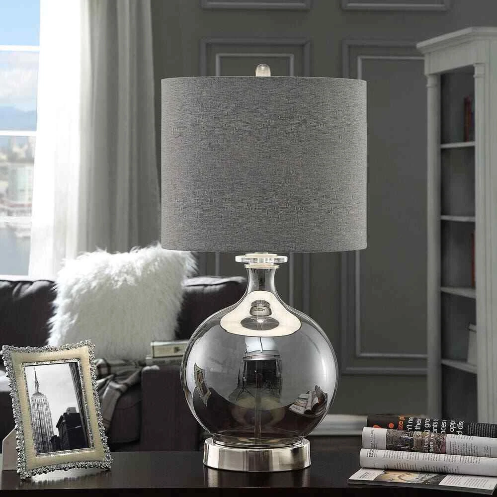 DesignFixity.com Store About Us Feedback Contact Us Description StyleCraft Saco 33 in. Smoked Glass Globe Table Lamp with Acrylic Base About This Product Sure to stand out in any room with contemporary decor, the Saco table lamp has a gleaming steel base, a smoked glass globe frame, acrylic accents, and a gray linen drum shade. The acrylic disc cap at the top of the glass frame matches the circular finial. Upgrade a living room or family room side table with this exquisite gray smoked glass lamp. Highlights Due to the production process, each piece is unique and no 2 are exactly alike Smoked glass globe lamp body with acrylic disk at the top Steel metal circular base Steel metal lamp necking Equipped with a 3-way switch located on the neck of the lamp Gray drum shaped lamp shade Assembly required Due to lighting and monitor differences, actual colors and finishes may vary slightly from what appears online Dimensions Product Depth (in.) 15.5 in Product Height (in.) 33 in Product Width (in.) 15.5 in Shade Diameter (in.) 0 in Specifications Base Color Smoked Glass Base Color Family Silver California Title 20 Compliant Yes Compatible Bulb Type Incandescent,LED Cord Length (in.) 72 in Damp/Wet Rating Dry Rated Fixture Color/Finish Smoked Glass Fixture Material Metal Included No Additional Items Included Lamp Base Material Metal Lamp Design No Design Lamp Shape Round Lamp Type Bedside Light Bulb Base Code E26 Light Bulb Type Included No Bulbs Included Light Setting 3-Way Max. Bulb Wattage (W) 150 W Maximum Wattage (watts) 150 Number of Bulbs Required 1 Number of Lights 1 Light Power Source Plug-In Product Weight (lb.) 13.99 lb Recommended Light Bulb Shape Code A21 Shade Color Family Gray Shade Fitter Type Spider Shade Material Linen Shade Shape Drum Switch Mechanism Toggle Button Volt (v) 120 Shipping Returns Payment Feedback At PA Home Outlet, we understand the importance of prompt delivery. That's why we strive to ship all orders within 24 hours of receiving cleared payment. We utilize reliable shipping services such as UPS and USPS to ensure your items reach you swiftly and safely. Rest assured, your package is in good hands from our store to your doorstep. Should you be unhappy and wish to return an item please do NOT open a return request, please message us and we will arrange a return or a refund depending on the issue. Shopping with PA Home Outlet is easy and secure. We accept various payment methods, including PayPal, credit/debit cards. Your payment information is encrypted and protected, ensuring a smooth and worry-free transaction. Shop with confidence knowing that your privacy and security are our top priorities. At PA Home Outlet, we value your feedback. Your opinions help us improve our products and services, ensuring we meet and exceed your expectations. If you're satisfied with your purchase, please take a moment to leave us positive feedback. If you have any concerns or questions, please don't hesitate to contact us before leaving feedback, and we'll do our best to resolve any issues promptly. Thank you for choosing PA Home Outlet! Please visit our eBay store to check out other items for sale! PA Home Outlet © All Rights Reserved