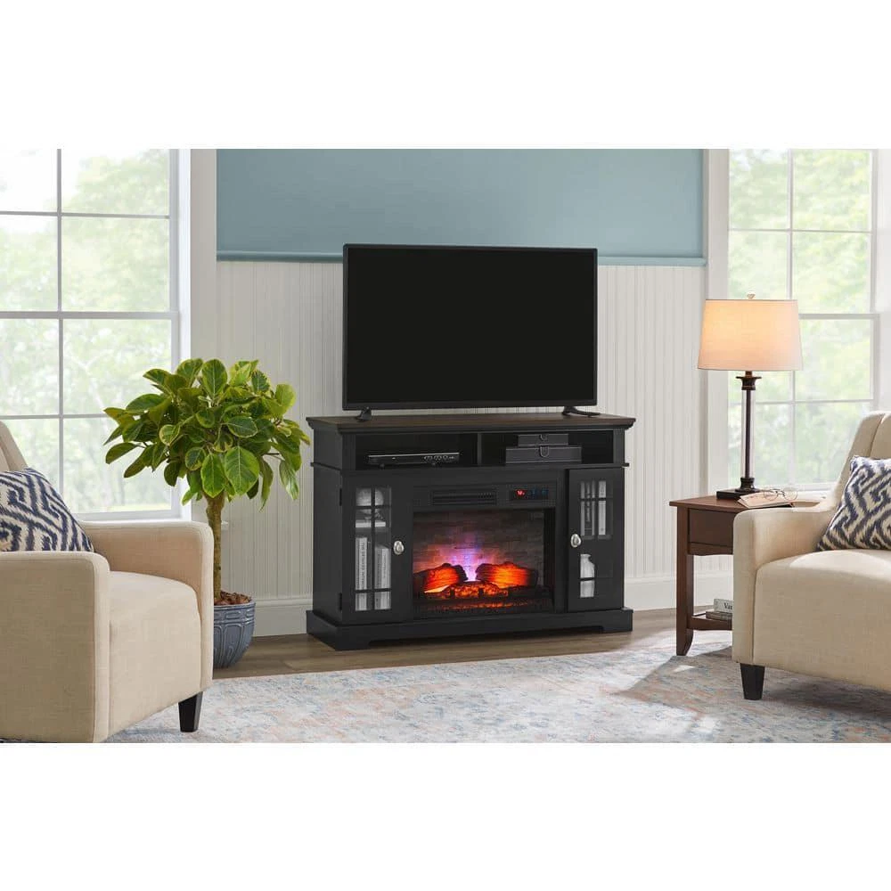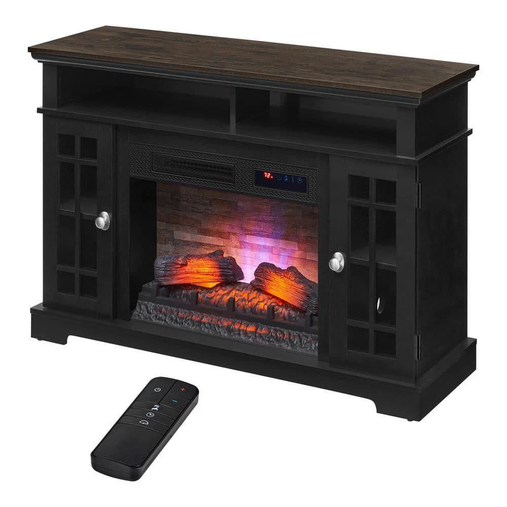 Contact Us Add to Favorite Contact Us Fast Shipping Hassle Free Return eBay Money Back Guarantee Authenticity Guarantee Features Accommodates most flat screen TVs up to 55" and 40 lbs. Patented Safer Plug® fire prevention technology AIM (Assembles In Minutes) design makes assembly less stressful Item Description Warmth, ambiance, and style come together in the Canteridge TV stand with infrared quartz electric fireplace. The supplemental zone heating efficiently heats up to 1,000 sq. ft. of your home so that you can lower electric bills and save money. The infrared quartz technology works to maintain natural humidity for a superior warmth that won't dry out the air. Enjoy the ambiance of your fireplace with or without the heat while the brilliant flames stay on. Patent pending 3D Flame Effect technology offers a layered flame effect with five adjustable brightness settings on a realistic log set and ember bed, so you can create your ideal fire that is both cozy and beautiful. The settings are easily controlled using either the control panel on the unit or with the remote control included. Use the center media shelf and side cabinets to store media components and TV accessories while adjustable interior shelves provide customizable storage. This TV stand can hold most flat screen TVs up to 55 in. and up to 40 lbs. And assembly doesn't have to take all day because this stand features AIM (Assembles in Minutes) design. And assembling the fireplace insert is made simple with a Phillips screwdriver and the easy to follow instructions. Amperage (A): 12.50 A Area Heated (sq. ft.): 1000 sq ft Assembly Required: Yes Color Family: Black Color/Finish: Black with Clear Lake Oak top Exterior Material: Wood Features: Adjustable Flame Colors,Adjustable Thermostat,Cable Management,Flame Works With or Without Heat,Infrared,Thermostatic Control,With Thermostat Heat Output (BTU/hour): 5200 Included: Glass Doors,Remote Control Mount Type: Freestanding Number of Heat Settings: Continuous/Variable Power Connection: Plug-In Product Weight (lb.): 104.50 lb Returnable: 30-Day Surround Material: Wooden Total BTU (Btu): 5200 Btu Voltage (V): 120 V Wattage (W): 1500 W Assembled Depth (in.): 15.50 in Assembled Height (in.): 32.50 in Assembled Width (in.): 47.00 in Firebox Depth (in.): 8.5 Firebox Height (in.): 21.75 Firebox Width (in.): 24 About us Customer service is our top priority! Please be sure to read the description thoroughly to make sure that this is the item you want before making a purchasing decision. If you have any questions about this item, please contact us via eBay messages before placing your order. We make every effort possible to accurately describe and depict the items. Please be aware that slight variations in color may be due to differences in lighting and computer monitor resolutions. All items are in stock at the time of listing; however, in the unlikely and unforeseen event that we are unable to fulfill your order through any of our networked warehouses, we will notify you as quickly as possible and offer you a 100% refund on your purchase. Thank you for shopping with us. We appreciate your business! Payment PayPal is our preferred method of payment. If you do not have a PayPal account, all major credit cards are gladly accepted through PayPal as the payment processor. PayPal offers great buyer and seller protection. Your order will be processed pending receipt of cleared payment through PayPal. Sales tax may be charged depending on your location. Shipping We provide fast, free shipping. Most items are shipped within 3-5 business days of receiving cleared payment. We ship to the lower 48 contiguous United States only. We do not ship to P.O. Boxes or APOs. For select items, we ship internationally through eBay?s Global Shipping Program. We do ship most of our smaller items internationally using eBays Global Shipping Program. If ordering electrical items outside of the U.S., please note that they will come equipped with a standard U.S. voltage plugs. You will need a suitable adapter to use the item in your country. Certain restrictions apply. Standard or Economy Shipping is ALWAYS FREE! You will be notified via eBay messages as soon as your items ship. Special Notice for Freight Items: If an item ships via Freight (Truck) Delivery, a valid phone number will be required so that we can contact you to schedule delivery. The item may be delivered with curbside delivery. An adult signature will be required. Please be sure to have available help on hand to assist you with moving the item to the desired location in or outside of your home. Freight items must be inspected upon delivery. In the unlikely event that damaged is observed, you MUST refuse delivery and note the damage on the shipping receipt and send it back via the Freight carrier. Returns will not be accepted on Freight items after they have been delivered, inspected, and the driver has left the premises. Returns We offer a 30 day return/exchange policy for most of our products. You can request a refund if you are dissatisfied for any reason with your product. (Restocking Fee May Apply). Only factory defects are accepted as a reason for a return. In the case of factory defects, if available, we will replace the product for you. When returning an item, it must be in all of the original packaging and include all of the original accessories or items that came with it. The item and package should be in original and perfect condition. You will be required to cover shipping on the return of non-defective items. All returns MUST be done within 30 days of date of purchase. Please note that we cannot give refunds or replacements after the 30 day limit has expired. When sending in a return, please note that it can take up to 7 business days for the return to be processed. We do our best to process as quickly as possible. We are extremely fair, and in the rare event of something out of the ordinary happening with our products or shipping, we will g