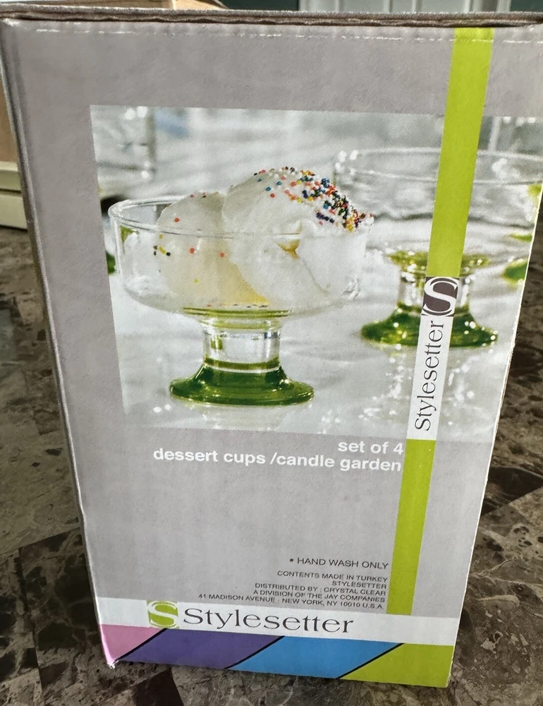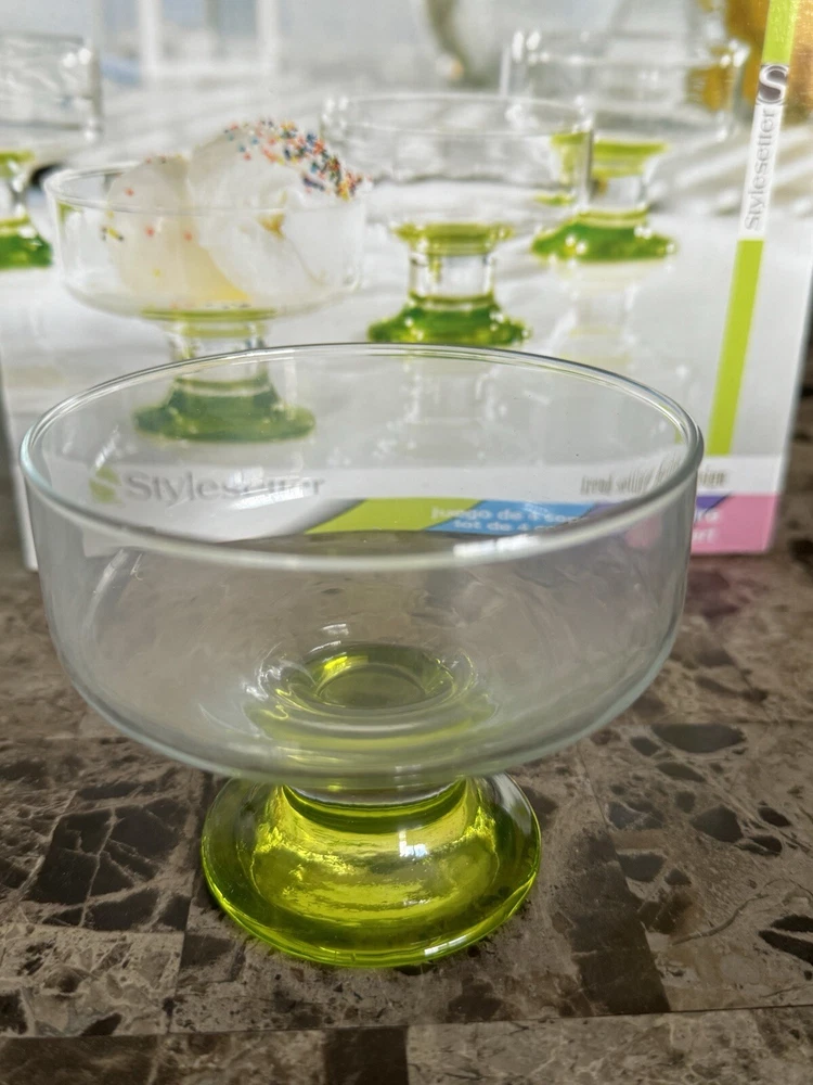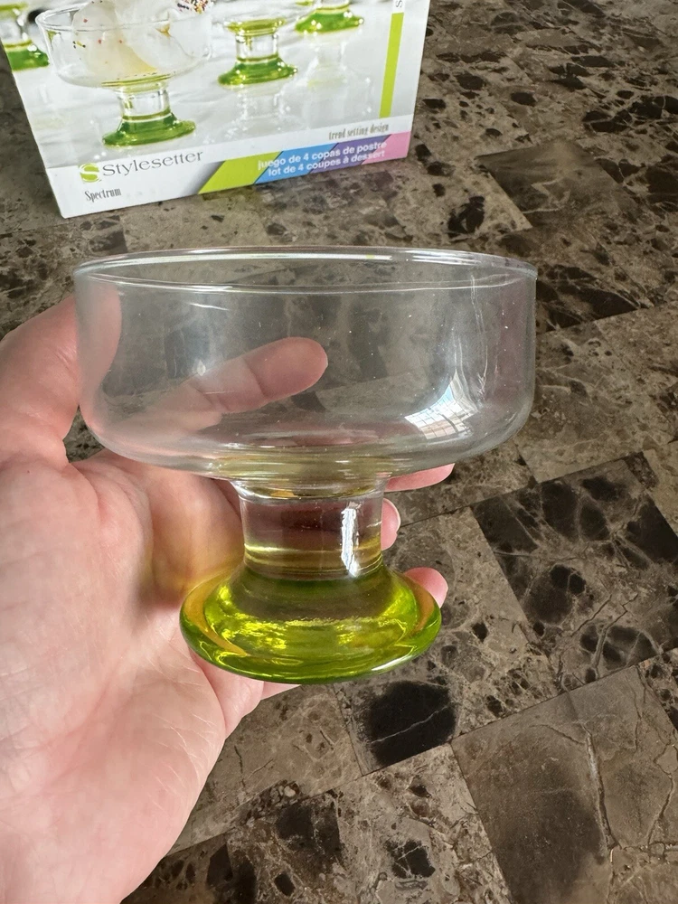 Enhance your dining experience with this stunning set of 4 dessert glasses from Spectrum/Stylesetter. These glasses are perfect for serving desserts, fruits, and other sweet treats. Whether you're hosting a special occasion or simply enjoying a family dinner, these glasses are sure to impress your guests. The contemporary style of these glasses complements any table setting, the glassware set is hand wash only. These glasses are versatile and suitable for all occasions, making them a must-have addition to your kitchen. Get this four-piece set today and elevate your dessert presentation.