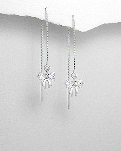 This Listing is for 1 Pair of Solid Sterling Silver White CZ Bow Threader Dangle Earrings . 38 mm long x 10mm wide = 1.5 " x 0.39" 1.5 grams. Solid 925 Sterling Silver Gift boxed and ready for giving! free shipping in the USA. Please note the photo does not show actual size, please refer to description for size. For other great studs see my store . Your satisfaction is important to me and 100% guaranteed, or your money back.