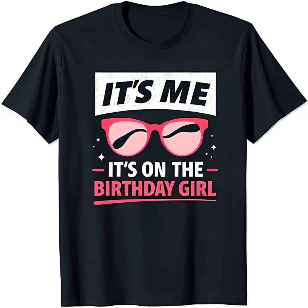 Stylish Black T-Shirt with Bold 'IT'S ME' Graphic & Pink Sunglasses for Birthday