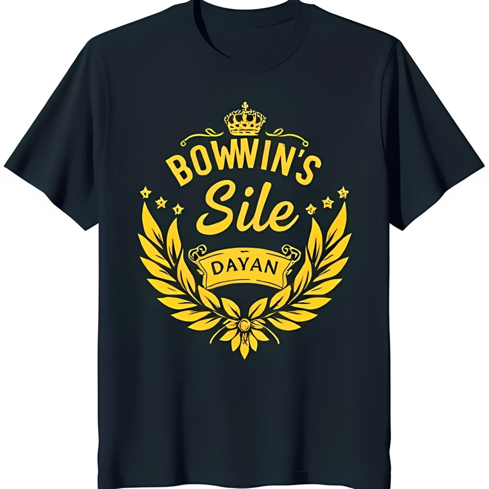 Stylish Black T-Shirt with Bold Yellow Graphic: 'BOWWIN'S Sile DAYAN' Design