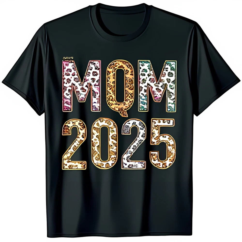 Stylish Black T-Shirt with Colorful Print MOM 2025 Design