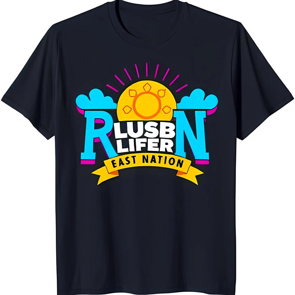 Stylish Black T-Shirt with Colorful 'Ron' Sun & Clouds Graphic