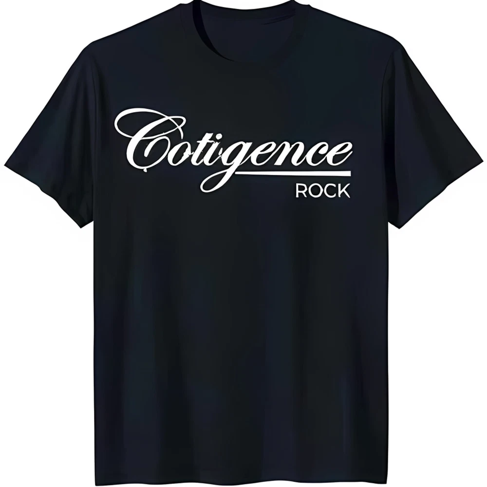 Stylish Black T-Shirt with 'Cotigence Rock' Graphic Print Classic Crew Neck