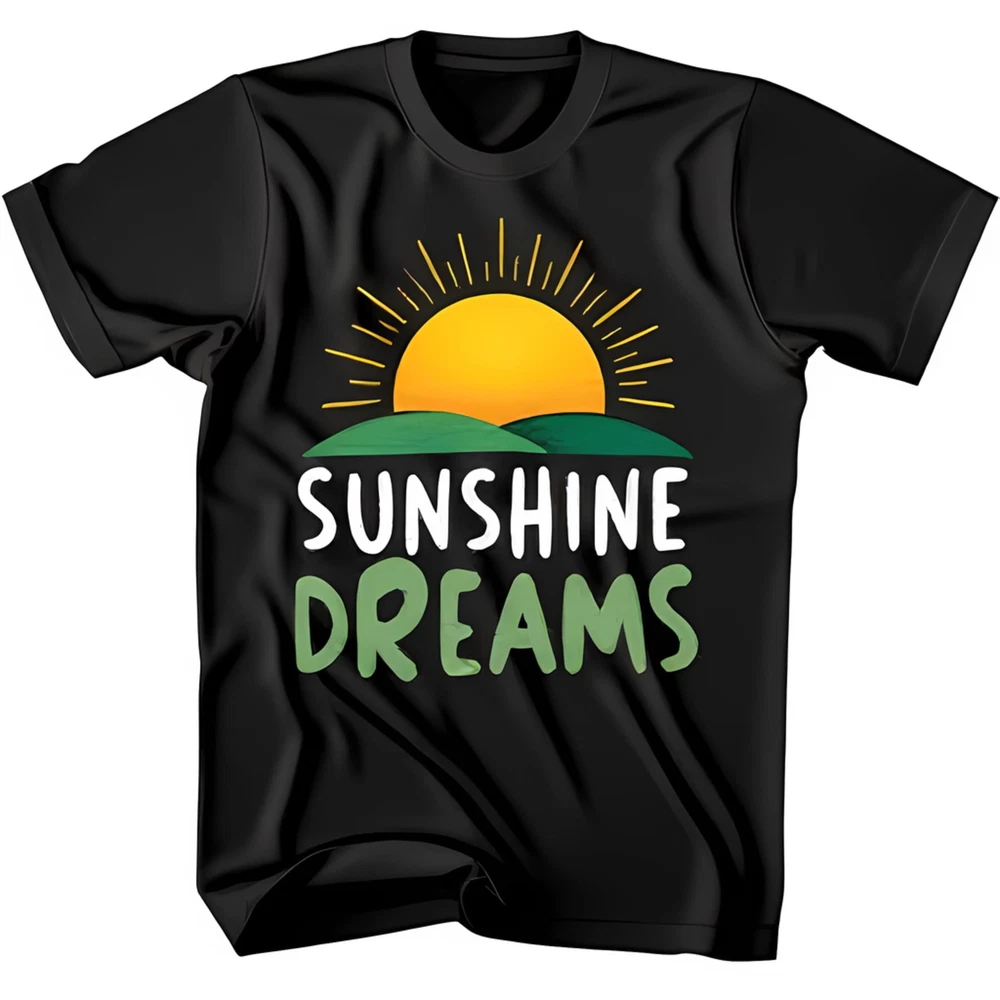 Stylish Black T-Shirt with Vibrant Sunshine Dreams Graphic Yellow Sun & Green