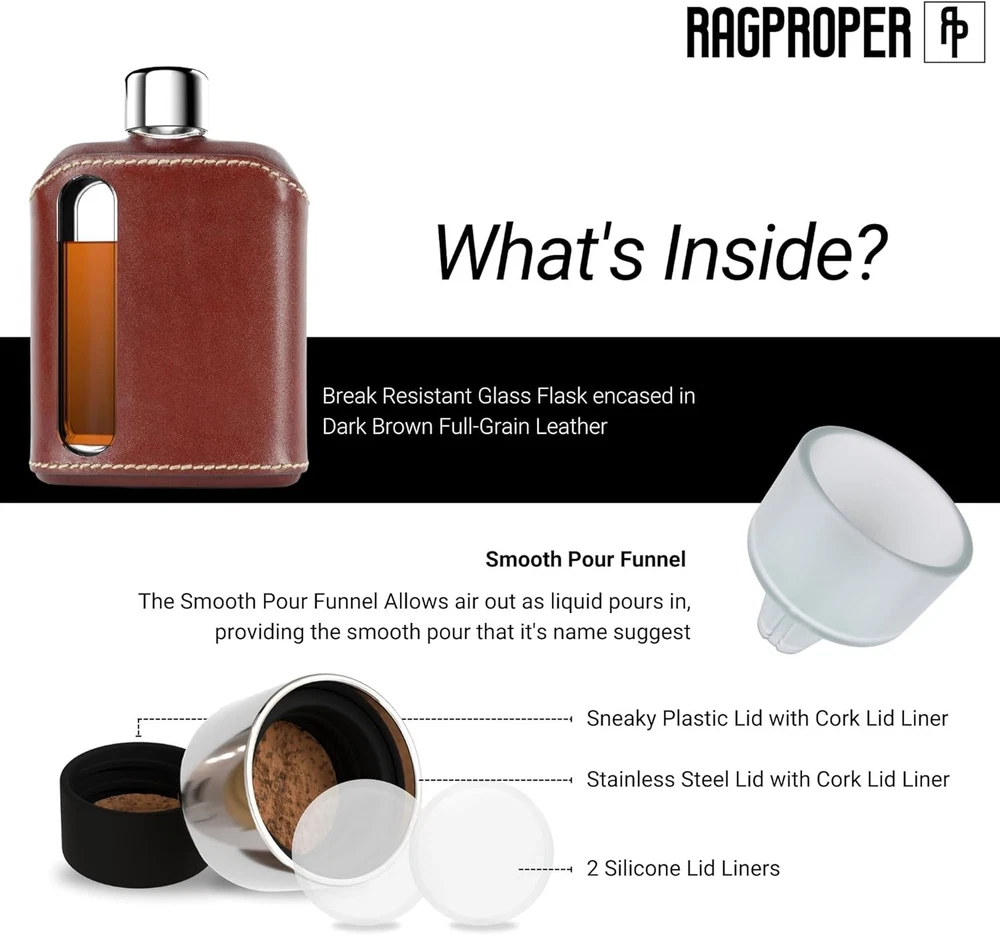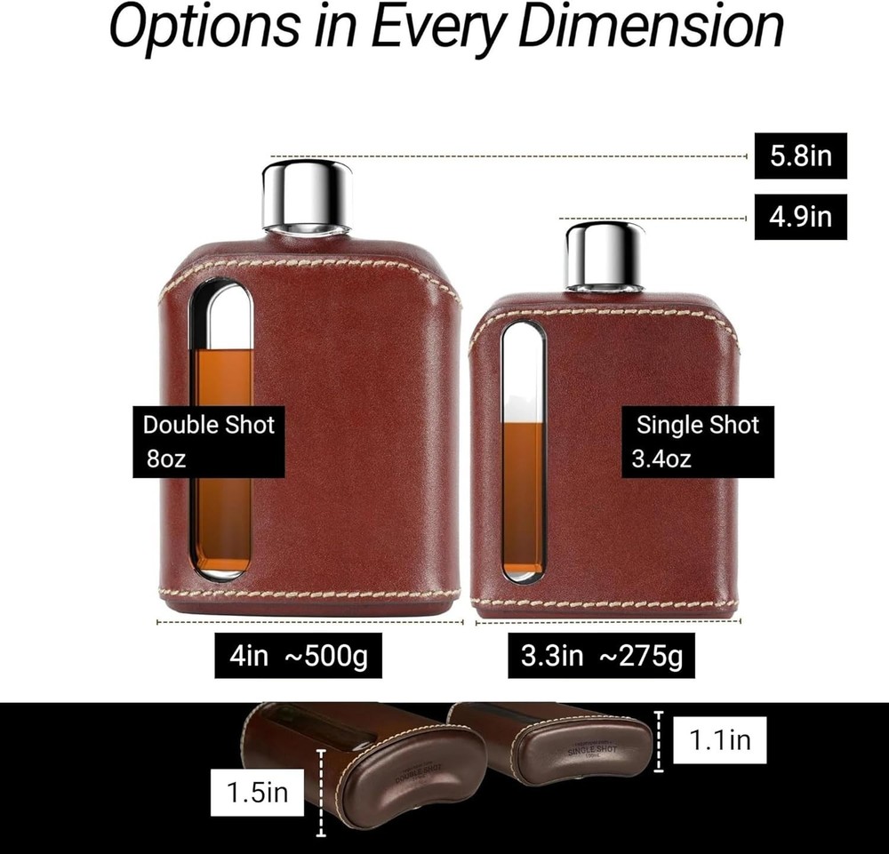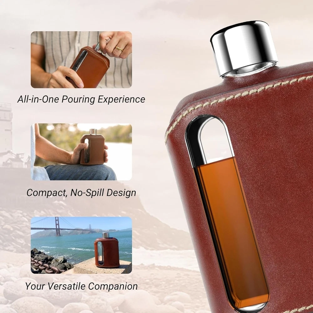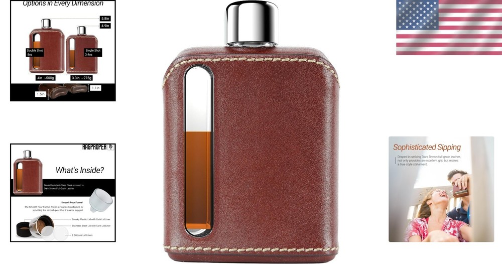 Stylish Glass Hip Flask for Men & Women - Dark Brown ‹ › ‹ › ‹ › ‹ › ‹ › ‹ › ‹ › ‹ › ‹ › Stylish Glass Hip Flask for Men & Women - Dark Brown Elevate Your Spirits Indulge in sophistication with the Glass Flask, a patented fusion of elegance and practicality. Designed for both style and functionality, this luxurious gift set includes a genuine leather whiskey glass sleeve, ensuring stability and a touch of refinement. Key Features: Available in two shot sizes: & 240ml. Beautifully presented in a sturdy collector's box. Includes a vented silicone funnel, a spare plastic cap, and extra silicone seals for maximum convenience. Convenient pour window helps avoid overfilling. Lightweight and easy to store, perfect for any adventure. Exceptionally strong glass crafted for durability, ideal for outdoor activities. Adventure-Ready & Versatile Your favorite spirits stay safe in our robust glass flask, designed to endure the rigors of adventure while keeping the taste fresh. Whether you're headed to a concert, a picnic, or just enjoying a day out, this flask is the perfect companion that fits neatly in your pocket. Heritage of Embodying the true essence of '' - to dress well, our flasks resonate with quality and timeless style. These pocket flasks echo a bygone era of superior craftsmanship, making them an exquisite gift for anyone who appreciates fine spirits. Why Choose the Glass Hip Flask? Step up your drinking game with a flask that doesn’t just hold your favorite beverages, but also enhances the entire experience. With its seamless blend of elegance and functionality, the Glass Hip Flask is an unparalleled choice for both discerning connoisseurs and those new to spirits. Make a statement, create memories, and savor each sip. Don't settle for ordinary. Experience luxury at its finest—order your Stylish Glass Hip Flask today! Shipping Free & Fast Shipping - We offer free shipping to most of the USA with a normal delivery time of 3-10 business days. However, due to various situations, additional delivery time (up to 3 weeks) may be required for some items. Alternative Carriers - We may use alternative carriers (e.g. USPS, FedEx, UPS, etc.) to ensure your package arrives safely and on time. Due to the use of multiple carriers, we are unable to provide a tracking number automatically. Handling Time - Orders are processed and shipped within 1-5 business days of receiving cleared payment. Shipping Restrictions - Shipping to Alaska, Hawaii, Puerto Rico, Guam, and other US territories may incur shipping charges or delivery restrictions. Please contact us before ordering, or your order can be refunded/cancelled. State Restrictions - There may be restrictions based on your state of purchase. For example, certain items may not be shipped to California due to state regulations. Contact for Tracking Updates - If you require tracking updates or have any concerns about the delivery of your order, please feel free to contact us, and we will be happy to assist you. Return 30-Day Hassle-Free Returns - We want you to be completely satisfied with your purchase. If you are not, you can return the item within 30 days of receiving it for a full refund or exchange. Easy Return Process - To start a return, simply contact us and we will provide you with a prepaid return shipping label and detailed instructions. Restocking Fee - There are no restocking fees for returns. However, the buyer is responsible for return shipping costs if the return is not due to a seller's error. Refund Processing Time - Refunds will be processed within 5 business days of receiving the returned item in its condition. Payment We accept all major credit cards, PayPal, and Apple Pay for your convenience. Your payment information is secure and encrypted to ensure a safe and seamless transaction. Please complete your payment within 3 days of purchase to avoid any delays in shipping. Feedback Your feedback is extremely important to us. We strive to provide the best products and customer service possible. If you are satisfied with your purchase, please take a moment to leave us a positive review. If you have any concerns or issues with your order, please contact us before leaving negative feedback. We are committed to resolving any problems and ensuring your satisfaction. Contact Us If you have any questions or concerns, please feel free to out to our customer support team. You can contact us through the eBay messaging system. We are available Monday to Friday, 9:00 am to 5:00 pm EST, and we will do our best to respond to your inquiry within 24 hours. Buy it now and enjoy a pleasant shopping experience! Unit Quantity: 226.8 grams Set Includes: Flask,Vented Silicone Funnel,Spare Plastic Cap,Extra Silicone Cap Seals,Collector's Box Material: Glass,Leather,Plastic,Silicone Features: Lightweight,Easy Pour Window,Vented Silicone Funnel,Durable,Versatile,Adventure-Ready,Practical Design,Stylish Type: Hip Flask Color: Dark Brown Number of Items in Set: 1 Capacity: 100 Shape: Rectangle Occasion: All Occasions Style: Modern Item Depth: 1.1 in Item Weight: 0.5 lb
