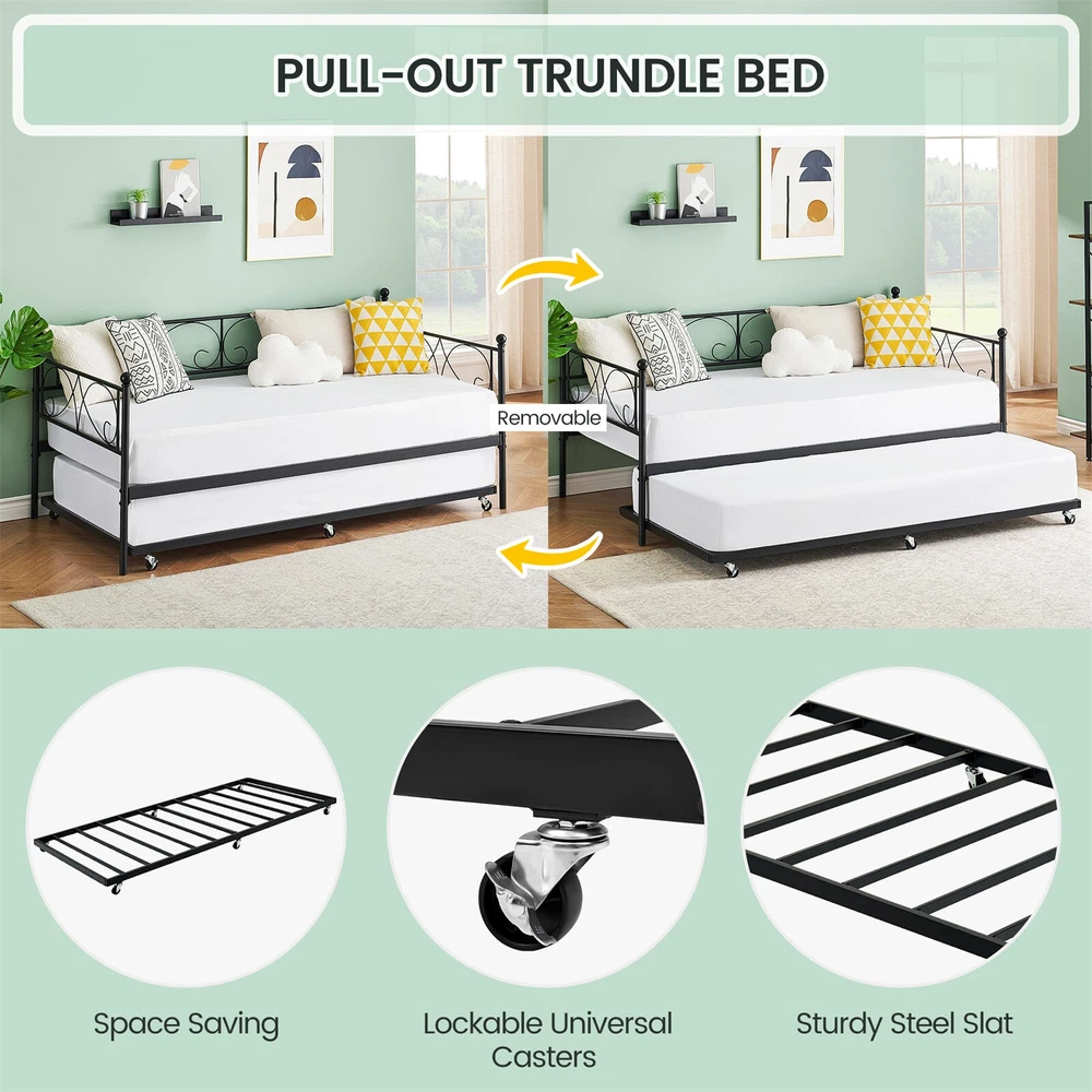 Stylish Metal Twin Daybed with Trundle and Slatted Support for Enhanced Comfort