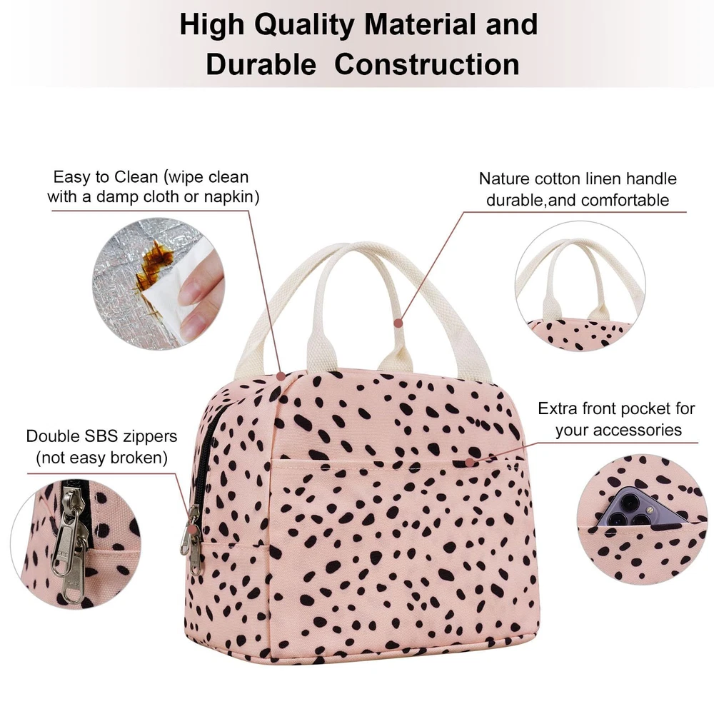 Exclusive eBay Product Listing Welcome to Your Favorite My Store! Your satisfaction is our top priority – Shop confidently! Pink Lunch Bag for Women,Chic Trendy Portable Lightweight Insulated Small Lunch Box Tote Bag for Preppy College or Adult Work Office Product Details Why Choose This Product? Compact and stylish lunch tote designed for adults women office work or outdoor daily use. With its insulated and leakproof design, you can trust that your meals will stay cold, fresh, and delicious throughout the day with ice packs. It's an excellent choice for nursing professionals, teachers, or anyone who needs to keep their food cool and appetizing for extended periods. Featuring a chic pink and black polka dot pattern adds a touch of fun and femininity to your lunchtime routine. Whether you're a fan of retro charm or enjoy trendy designs, this lunchbag combines both elements effortlessly. The contrasting colors create a visually appealing aesthetic, making it a standout accessory wherever you go. The small to medium size of the lunchbox bag offers a convenient and portable option for carrying your meals, while the zipper pocket provides additional storage for utensils or personal items. Offering a reusable and environmentally friendly solution with this lunch bag. By opting for this insulated tote, you're making a sustainable choice while still looking fashionable. The feminine and minimalist design ensures you'll stand out from the crowd with your meal prep accessories. Shipping Terms We ship only to addresses provided by eBay. Please verify your shipping details before confirming your order. Orders ship within 1-2 business days, arriving typically within 3-7 business days. Shipping is available exclusively within the contiguous United States. No shipping to Alaska, Hawaii, Puerto Rico, or PO Boxes. Return & Satisfaction Guarantee Returns accepted within 30 days from receipt. Items must be in original packaging and condition for full refunds. If the product arrives damaged or incorrect, please contact us immediately through eBay messaging. Accepted Payments We accept payments securely via PayPal and major credit cards through eBay. Get in Touch For questions or assistance, contact us through eBay messaging. We respond within 24-48 hours.