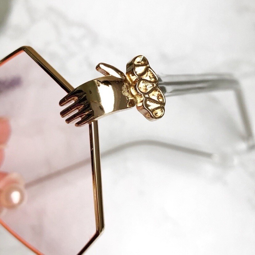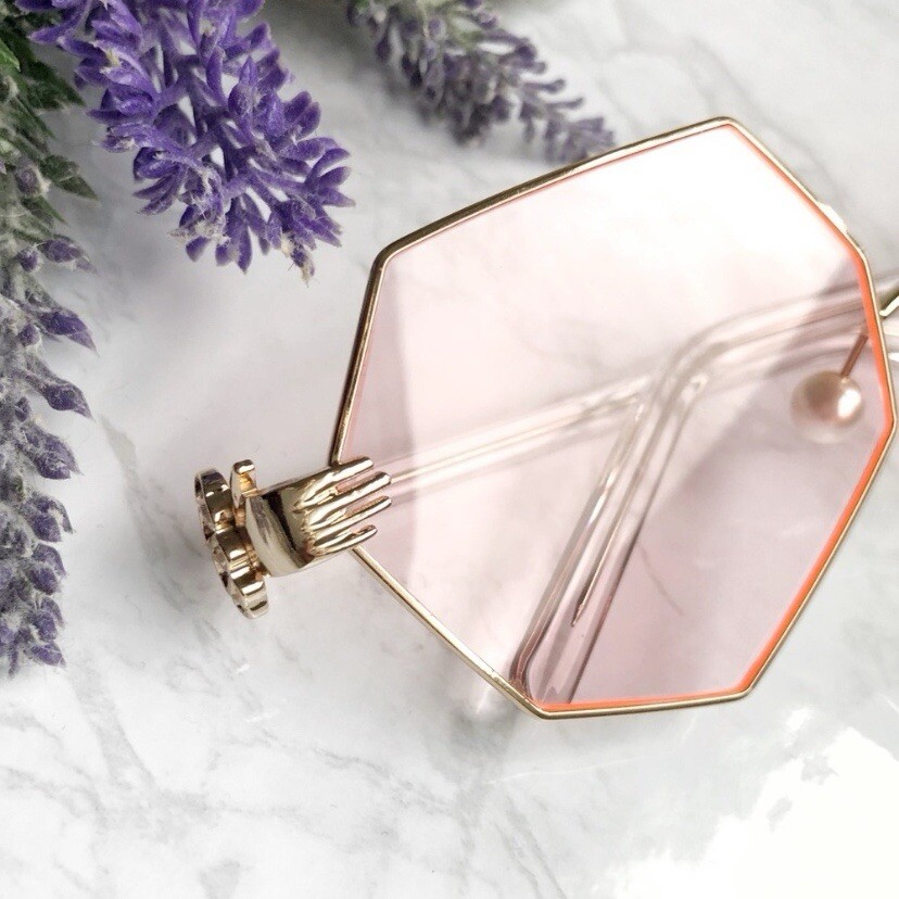 Elevate your style with these oversized sunglasses featuring a gold frame and pink lenses. The geometric shape adds a modern touch to any outfit, while the lightweight design ensures comfortable wear for all day. The nose pads with pearls add a touch of elegance. Features/Style: - Oversized - Geometric - UV400 Protection - Pearl Nose Pads Color: Pink/Gold Condition: NEW, Smoke Free Home