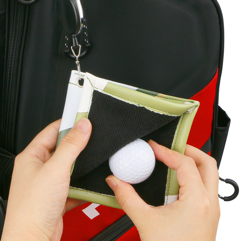 Specifications: Product Name: Golf wiping towel / wiping club cloth Material: high-grade PU strong absorbent terry cloth Process: Digital printing double-sided beauty pattern Weight: 42g/pcs Function: Rub the ball, wipe the cue, can be hung on the bag towel ring, can be hung on the waist, retractable easy-to-pull rope buckle.