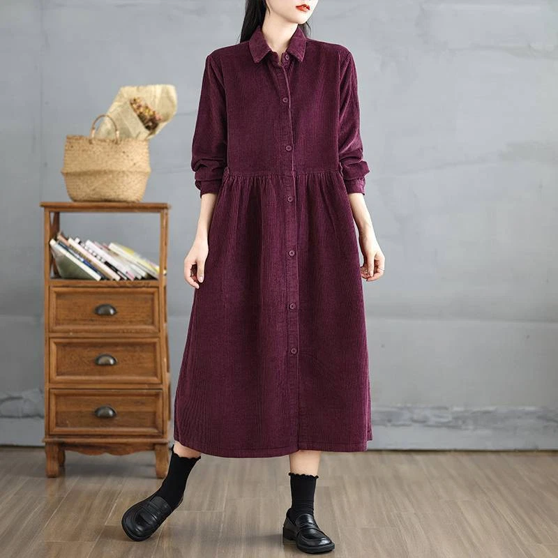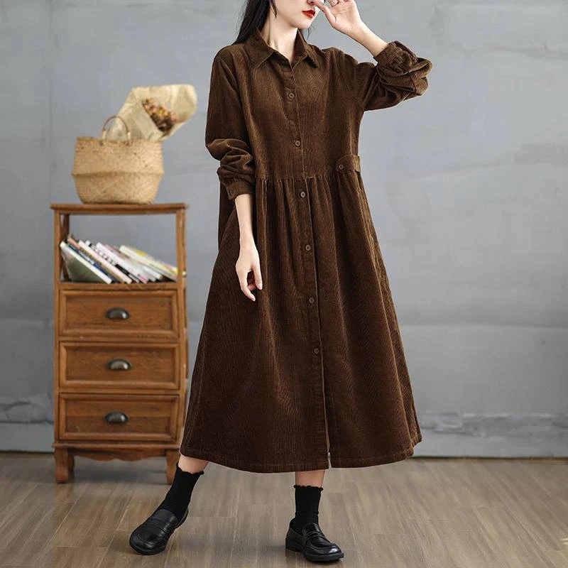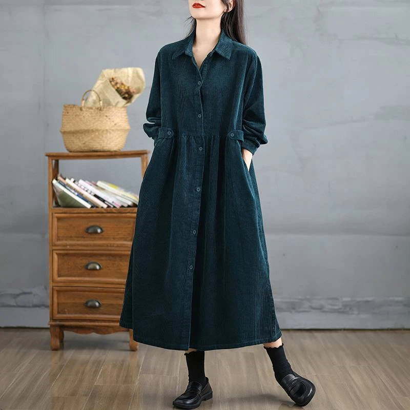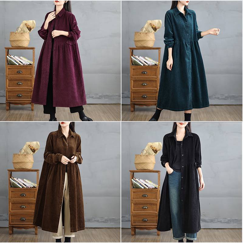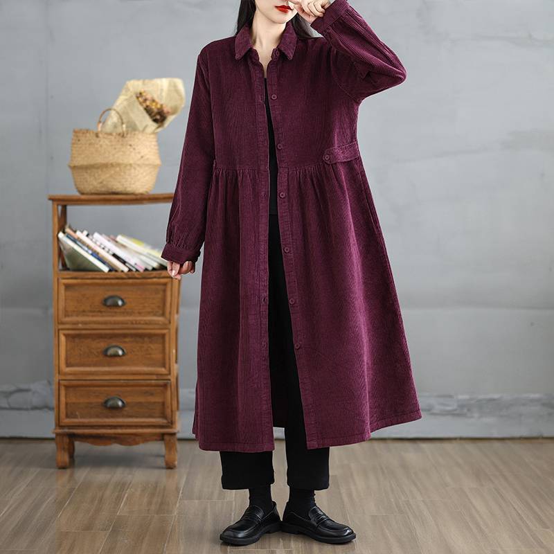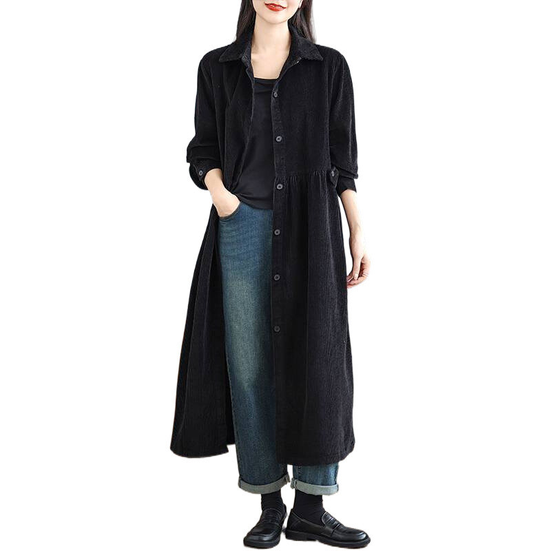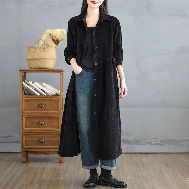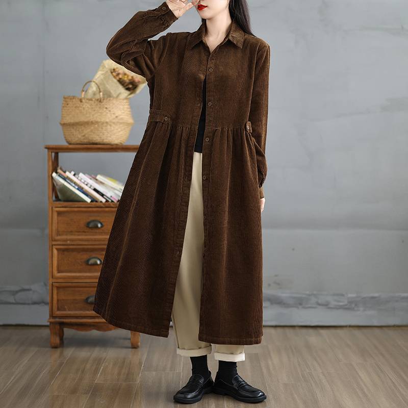 Stylish Women’s Corduroy Trench Coat with Lapel Collar & Long Sleeves