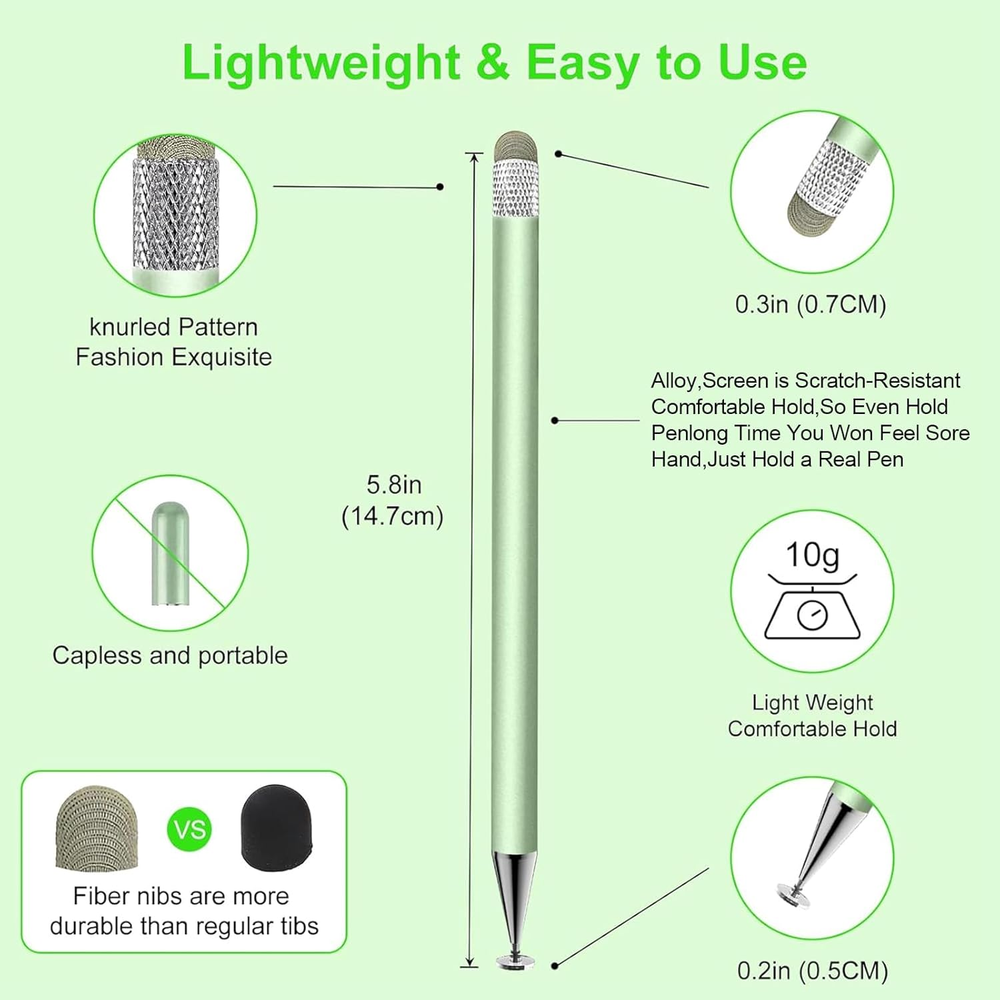 Store New Arrivals Add to Favorite View Feedback Contact Fast deliveries to the customer's home Quality customer service John Make the customers happy! Stylus Pen for Touchscreen,3Pcs 2In1 High Precision Sensitivity Stylus, Suitable for Iphone/Ipad/Android Stylus for Ipad,Compatible with Touch(Green/Purple/Rose Gold + 4Tips) Description 【Touch Screen Stylus】Zhao Cai Jin Bao stylus can be used on all touch screens,stylus pen for touchscreen can free your fingers, the cap-free design makes it easy to carry,there is no delay, lag, anti-slip and noise during use,stylus for ipad will not damage your screen, it is very suitable for learning, drawing and playing games, providing you with higher sensitivity and precision. 【2-in-1 Design Stylus】stylus pen is made of lightweight alloy, and there is no need for Bluetooth connection or charging.stylus for ipad pen has different nibs at both ends. One end is a disc nib/0.2in, which is suitable for taking notes and drawing, and the other end is a durable fiber nib/0.3in, which is used for browsing or scrolling web pages. It can be used after opening the package to meet your different needs. It feels comfortable, durable and anti-aging, making everything feel like writing on paper, and easily capturing inspiration. 【High Precision High Sensitivity】stylus pen for ipad uses a flexible disc tip that can be flexibly attached to the screen without leaving disconnected lines on the tablet or mobile phone, and the fiber head design is more durable than the rubber head,effectively preventing the screen from being scratched and fingerprinted,transparent disc tip allows you to give the exact position when writing or drawing with the stylus. The fiber head and disc tip can bring you two different touch experiences, ensuring that you are using the stylus for ipad accurately without delay, allowing you to write and draw more smoothly. 【Widely Compatible】Zhao Cai Jin Bao stylus pens is compatible with touch screen devices, suitable for Apple, Xiaomi, Samsung, Moto, Lenovo and other touch screen devices. stylus pens for touch screens is also compatible with operating systems such as Google, Microsoft, Android, etc. Whether it is writing, taking notes, browsing the web, playing games, etc,tablet pen allows you to easily switch between devices. Only one stylus can meet your needs, allowing you to fully unleash your creativity on the application,If the device does not respond, please try increasing the pen pressure first, or contact our customer service directly. 【After Service】You will get 3 stylus pen for touchscreen in different colors (green/rose gold/purple),stylus accessories include 2 disc nibs and 2 fiber pen caps, both ends are freely replaceable without tools, you can easily replace them by rotating the end of the fiber pen cap or pulling out the disc nib. You can share the stylus for ipad with your family and friends. When you have problems with the Zhao Cai Jin Bao stylus pen and need help, you can always contact us. Product description Item model number K-518 Item Weight 1.44 ounces Item dimensions L x W x H 7.08 x 1.96 x 0.55 inches Are Batteries Included No Color Green/Purple/Rose Gold Product Dimensions 7.08 x 1.96 x 0.55 inches Material Alloy Compatible Devices Smartphone,Tablet,Android Minimum Required Operating System Version Android 2.3 Gingerbread Batteries Required? No Battery Description No Battery ABOUT US We offer the best prices around on high quality products. Our E-store includes media such as books, movies, music and games while offering electronics, toys, sporting apparel, clothing, tools, general home, garden items and more. SHIPPING We are always working hard to ensure your package arrives as soon as possible. Please understand that some factors like weather, high postal traffic, and the performance of shipping companies are outside of our control. We offer free shipping to the lower 48 states and ship within 2 business days of payment, usually sooner. We do not accept P.O. Boxes. Please provide a physical address. For shipping outside of the continental USA, we only use eBay's Global Shipping Program. The item is shipped to KY and then sent to the rest of the world. International customers are responsible for all duties and taxes. Continue to 'check out' to calculate costs for shipping the item to your country. Messages regarding eBay's Global Shipping Program MUST be directed at eBay EXCLUSIVELY. RETURNS We offer a 30-Day Return Policy on items in which you are not completely satisfied with. You have the option of a full-refund or an exchange of the item. No returns are available on items shipped outside of the USA PAYMENT We accept PayPal. CONTACT US This page content is yet to come Please ad us to your favorite seller and visit again later Thank You CUSTOMER SATISFACTION We try our very best to make sure every customer is completely satisfied. If there's a problem, message us! We're happy to help. WE ACCEPT