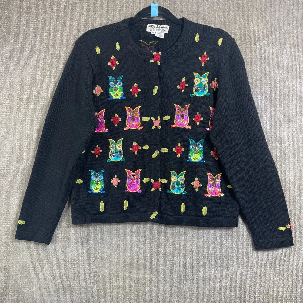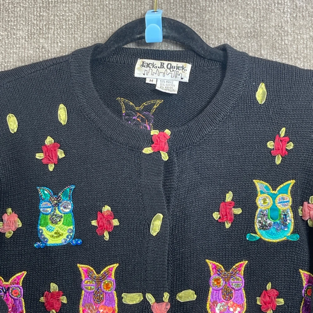 Jack B Quick Sweater Womens Medium Cardigan Owl Sequin Beaded Retro Granny Jewel #5052 Good Pre Owned Condition. To Ensure a good fit, it is recommended to compare these measurements with a similar garment that fits well!!. APPROXIMATE MEASUREMENTS ARE PHOTOGRAPHED, SEE PICTURES FOR SIZING AND TAG DETAILS!. Quick Shipping!!!!. Smoke Free home. ALL ITEM ARE CLEANED PER EBAY STANDARDS. Thanks and God Bless!!. WE OFFER COMBINE SHIPPING**. Returns: We accept returns on all items within 30 days of the day it was received. Items must be in their original condition including all tags, labels, and or packaging in order to be accepted. Please contact us for any issues with your order before leaving any negative feedback. We will be glad to help. Thanks