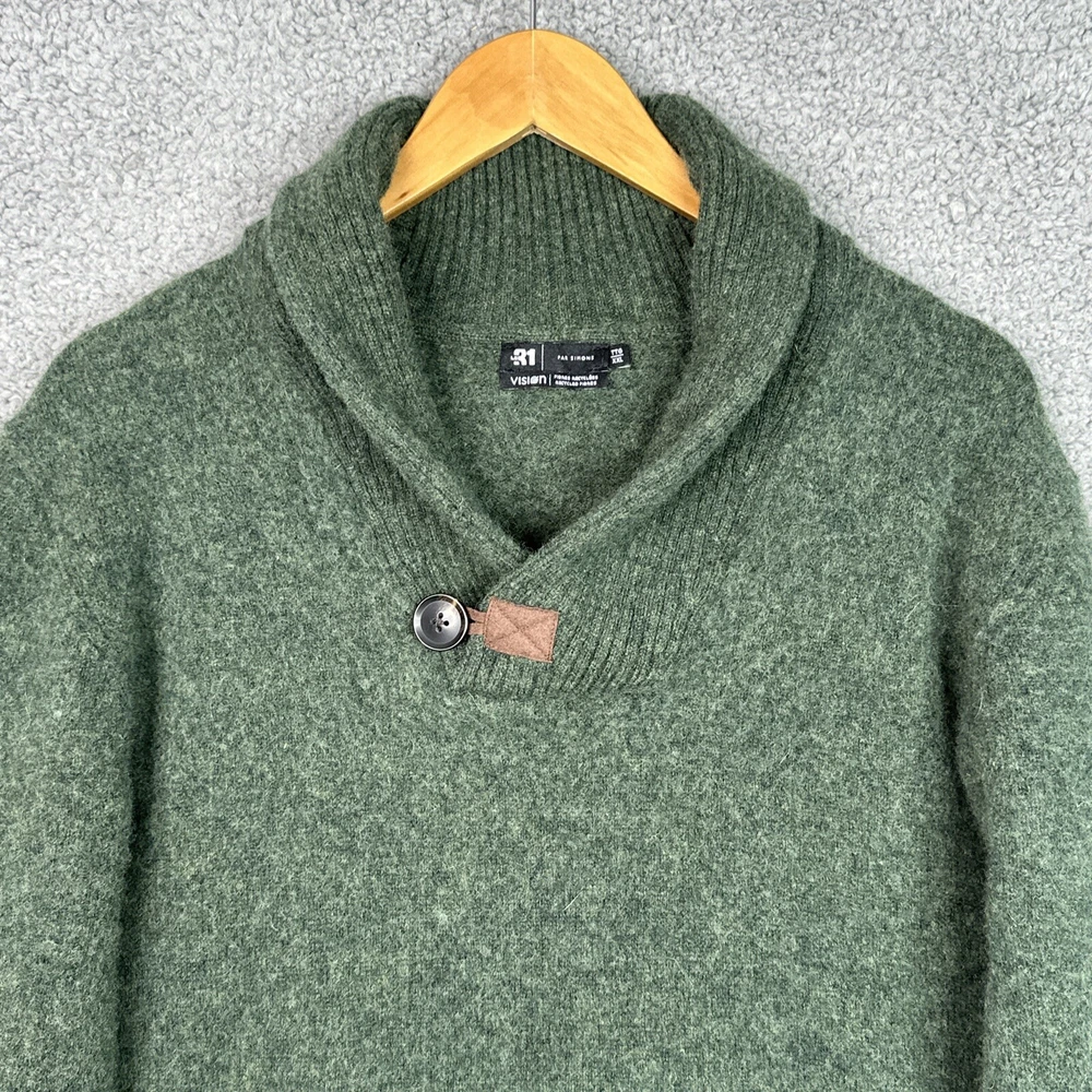 Le 31 Simons Sweater Sweater Size: Men XXL Color: Green Long Sleeve Pullover An eco-friendly update 100% lambswool knit collection, made from recycled fibres that are always of high quality Shawl collar with a single button Ribbed edging APPROX. MEASUREMENTS LAYING FLAT Chest: 22.5 " (armpit to armpit) Length: 27 " (shoulder to hem) Condition : Very good pre-owned condition. Minimal signs of wear Smoke free home Super fast shipping! We ship out the same day or the next day!