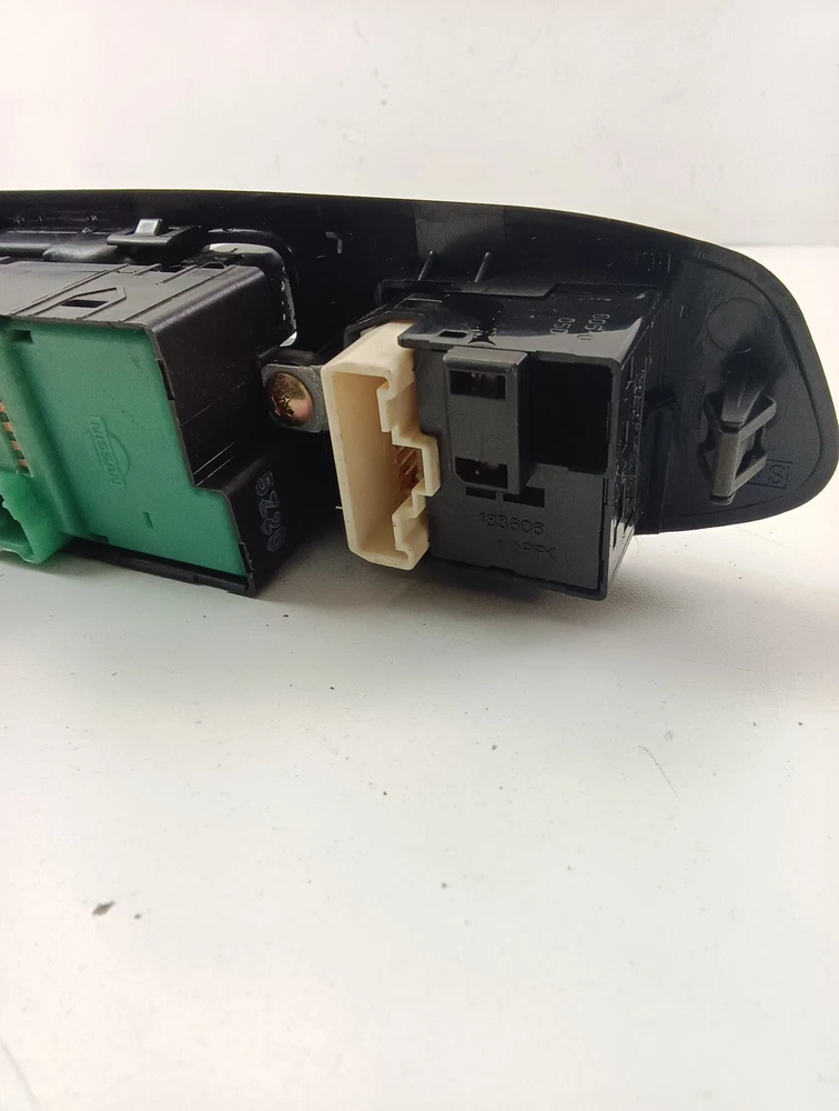 This is a genuine OEM Subaru Forester front left driver master window control switch in black. It is a push-pull switch with easy installation, designed for models from 2006 to 2008. Made in Japan, it features a window switch and door lock button function. It is suitable for controlling the window on the driver's side of the vehicle.
