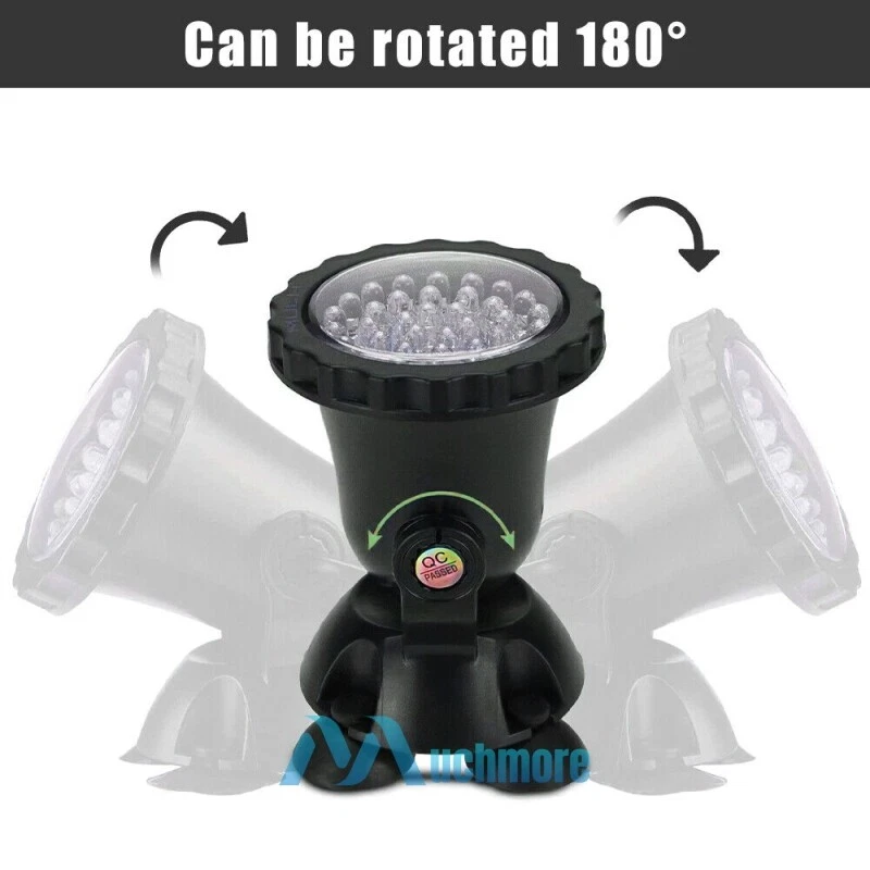 Submersible 36 LED RGB Pond Spot Lights Underwater Fountain Fish Tank Decor Lamp Product Description Submersible 36 LED RGB Pond Spot Lights Underwater Fountain Fish Tank Decor Lamp 100% Brand New & Excellent quality Free & fast shipping, with tracking number provided Features: * 4 Suction Cups * Fully waterproof, IP68 * Adopt supper bright LED lamp, high luminous efficiency * Full adjustable 180 degree joint. * 36 LED light bulbs, 7 patterns change in every 1-2 seconds. * Plug in wall transformer,easy to operate * Powerful sucking cup, convenient and substantial * Rubber protective cover to prevent collision and damage * Apply to fish tanks, cisterns, rockers pet cages etc Specifications: Waterproof: IP68 Item Color : Black Power: 2.5W Numbers of LED: 36 LED Type: straw hat LED Plug: US(plug cable length 0.5m) Power Cable total length: approx. 2.5m Product Size: 10*7cm Input:AC100-240V 50/60Hz Output: 12V, 0.5A Package includes: 1 x 36 LED Underwater Spot Light 1 x Power plug 1 x User Manual Payment Shipment Return Feedback Contact us Payment * We Accept Payment via PAYPAL ONLY . * Payment Must be Made within 4 Days of Auction Closing. * Non-Payment may Result in a UPI (Unpaid Item) being Put on Your Account. eBay will Automatically Close Your Account if You Accumulate 4 UPI's total. * Please List Your Special Requests ( Color, Size, Packages, etc. ) in the PAYPAL NOTES SECTION when you make payment. Shipment * Shipping will be handled in 24 business hours after payment got. Ship to PayPal Address only , please confirm it before paying. * Please leave your phone number in the address in case there is an address problem. Return * Returns and Exchange accepted within 60 Days. * Refund will be given as Money Back. * Free Return shipping. * Before you return the defective item,please email us for the RMA, and we will reply you in 24 hours in working days. If you do not get reply please check if your mail box has refused our reply or not, then send to us again, thanks! Feedback If you are satisfied with the transaction please remember to leave us a positive feedback (5-Star) will be much appreciated. Please DO remember to contact us before leaving the neutral (3 stars) , negative feedback (1-2 stars) or opening a case/dispute if any problem caused by the item . Normally your email would get replied within 24 hours on working day and your issue would be followed up carefully until we've reached a consensus! We will try our best to solve the problem and leave you a happy shopping mood here. Thank you! We are not only selling good items, but also selling with excellent after-sale service and a strong sense of responsibility. We will always try our best to find you a satisfactory solution if any problem takes place! Contact us Email muchbuy-outlet at Paypal registered email or ebay message.