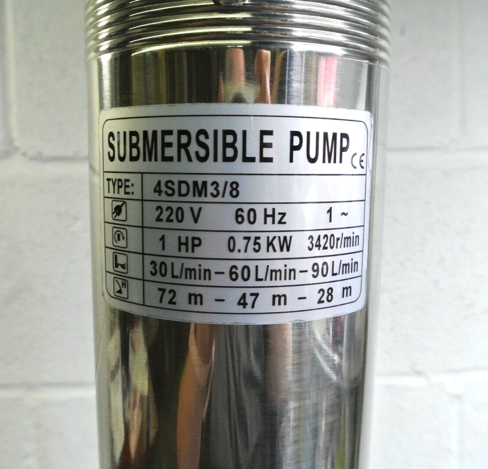 Item available today is the, Submersible Pump 4SDM3/8 220v 60Hz 1HP . This is a new submersible pump in opened box . Pump has never been used. Ready for use. Please see photos for more details. Items in photos are what come with the listing. Thank you for shopping small business. Terms of Sale Listing is for item and/or accessories shown in photos only. Some states may require a tax be charged at the time of checkout, this is eBay automated. We ship and answer questions Mon-Fri 8am-4pm . We stand behind our products and would be happy to assist you if you experience an issue. Please contact us first. We ship to your confirmed PayPal address only using UPS or USPS. Items over $200 may require signature upon delivery. There are no returns on items sold for parts. A RESTOCK FEE UP TO 20% MAY BE CHARGED FOR RETURNS THAT ARE NOT OF FAULT OF THE SELLER OR ITEMS NOT RETURNED IN THE SAME CONDITION. Thank you for shopping small business! Shipping Information Only ships within the Continental United States with one business day processing time. LM 07 /08/2024 ( E1 )