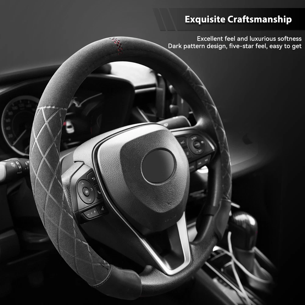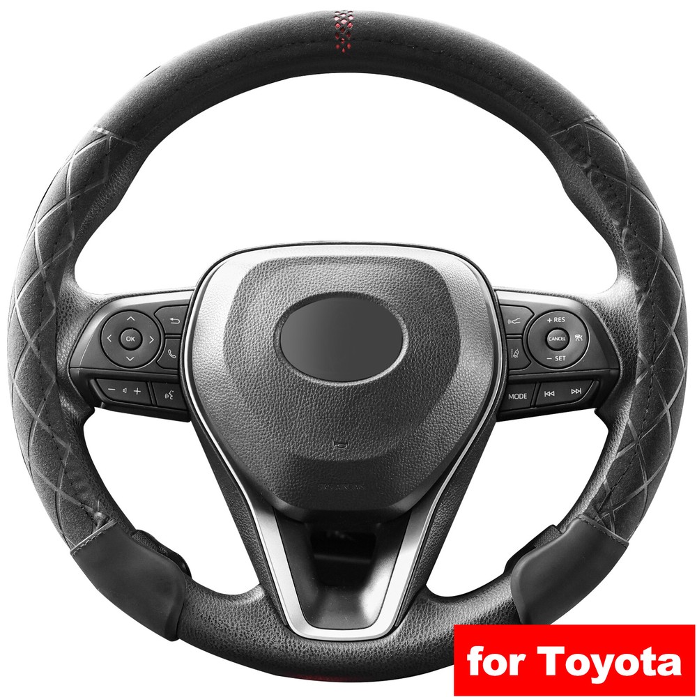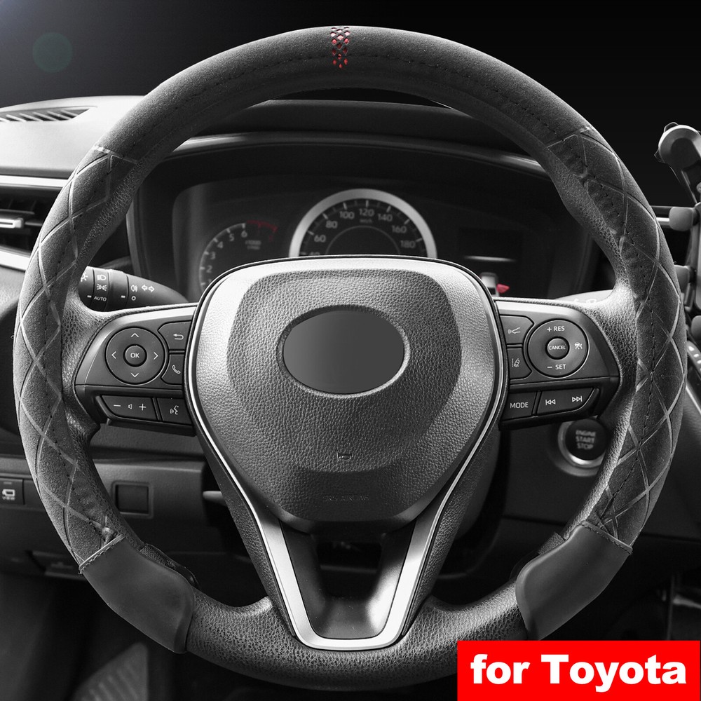 Car Steering Wheel Cover Suede Plush Non-Slip for Toyota Corolla RAV4 Camry Specifications: Fitment: for Toyota O/D Type Steering Wheels with an Outer Diameter of 37~38cm(14.5" to 15") Color: black Material: Suede Features: --Anti-slip inner ring & suede. --More suitable for the original steering wheel. --Four Seasons General. --Feel comfortable, anti-skid and wear-resistant. --A perfect coat for your steering wheel. Package contents: 1 x Steering Wheel Cover