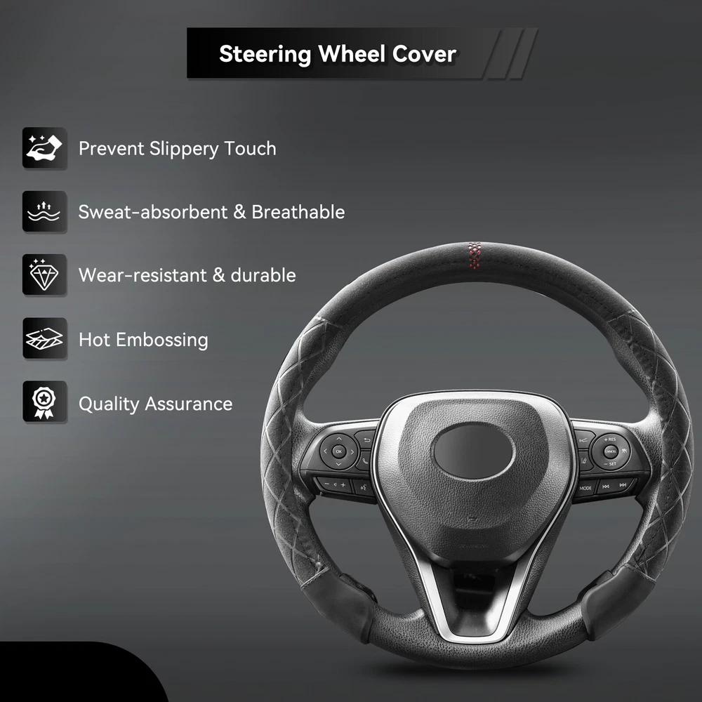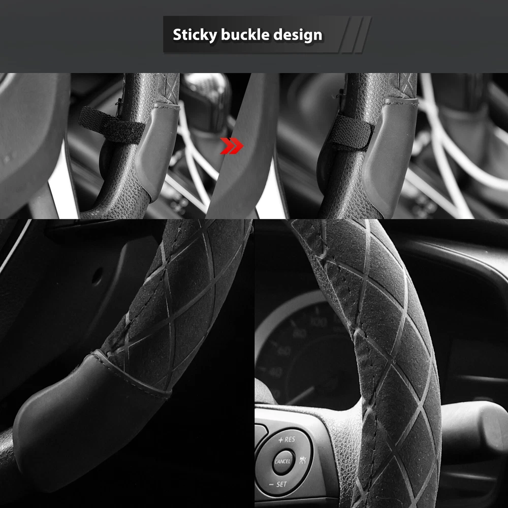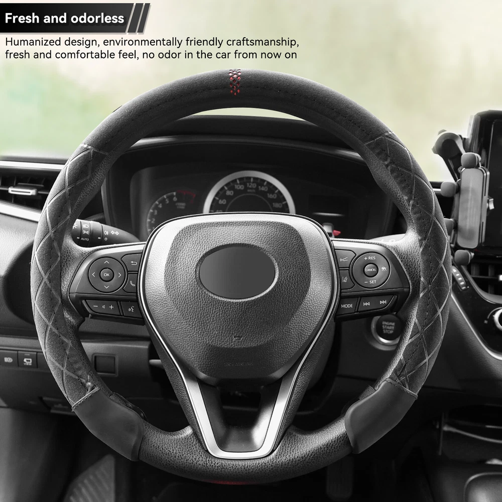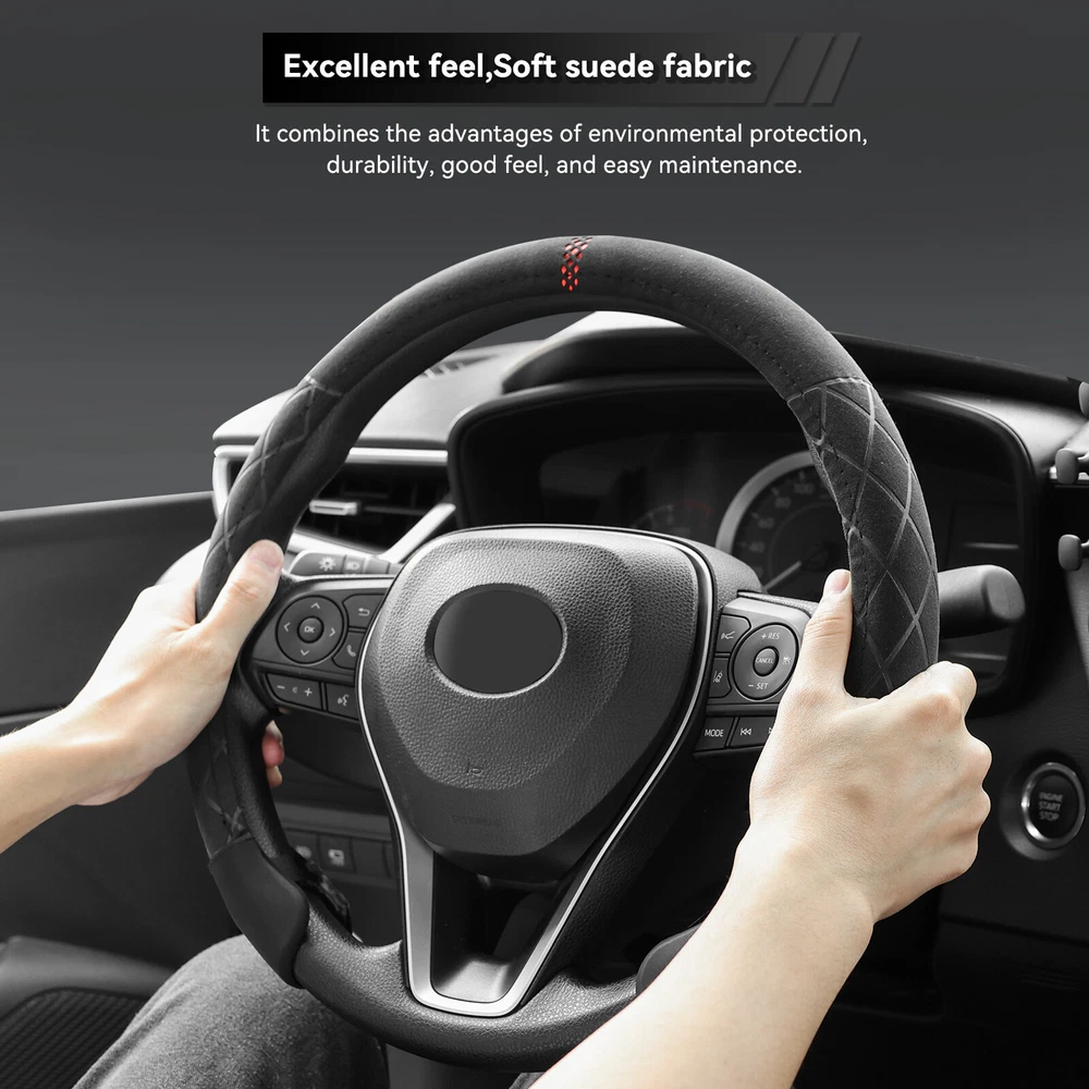 Car Steering Wheel Cover Suede Plush Non-Slip for Toyota Corolla RAV4 Camry Specifications: Fitment: for Toyota O/D Type Steering Wheels with an Outer Diameter of 37~38cm(14.5" to 15") Color: black Material: Suede Features: --Anti-slip inner ring & suede. --More suitable for the original steering wheel. --Four Seasons General. --Feel comfortable, anti-skid and wear-resistant. --A perfect coat for your steering wheel. Package contents: 1 x Steering Wheel Cover