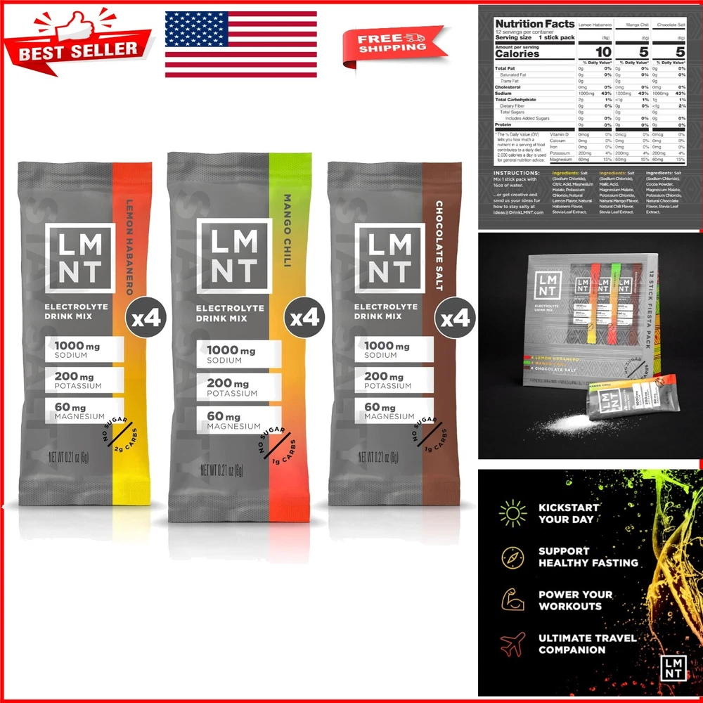 Sugar-Free LMNT Hydration Electrolyte Mix - Optimal Keto Energy & Recovery ‹ › ‹ › ‹ › ‹ › ‹ › ‹ › ‹ › ‹ › Sugar-Free LMNT Hydration Electrolyte Mix - Optimal Keto Energy & Recovery THE ULTIMATE ELECTROLYTE DRINK MIX Experience the tantalizing taste of hydration with LMNT, the electrolyte drink mix formulated for those who seek a keto, low-carb, or intermittent fasting lifestyle. It’s gluten-free and specifically designed to combat low-carb fatigue and keto fog, all while maintaining optimal energy levels. WINTER HYDRATION NEEDS Stay energized during the colder months when hydration becomes paramount. The drier air and cold-induced diuresis can deplete your electrolytes; therefore, it’s essential to stay 'salty' year-round. LMNT ensures you meet your hydration needs even in freezing temps! INGREDIENTS THAT WORK FOR YOU No sugar, no gluten, no fillers, and no artificial ingredients. Perfectly balanced ratio of sodium, potassium, and magnesium. Formulated to deliver all the essential benefits without any junk. DEVELOPED BY ROBB WOLF Traditional electrolyte drinks just don’t cut it for an active lifestyle. LMNT was created from necessity, informed by science, and tailored to you. Fight the sugar-laden alternatives with a drink you can trust. HOW TO USE Simply mix one packet with 16 ounces of water (or adjust to your taste). Note: This product may not be suitable for individuals on a low-sodium diet unless directed by a physician. WHY CHOOSE LMNT? A healthy alternative to sugary sports drinks. Supports energy levels, endurance, and recovery. Science-backed electrolyte ratio for maximum absorption. Easy grab-and-go packaging for your active lifestyle. Don’t settle for hydration that doesn’t deliver. Embrace a better way to replenish your electrolytes with LMNT, your smartest choice for optimal health and vitality. Shipping Free & Fast Shipping - We offer free shipping to most of the USA with a normal delivery time of 3-7 days. However, due to the current situation, additional delivery time (up to 3 weeks) may be required for some items. Alternative Carriers - We may use alternative carriers (e.g. USPS, FedEx, UPS, etc.) to ensure your package arrives safely and on time. Due to the use of multiple carriers, we are unable to provide a tracking number automatically. Handling Time - Orders are processed and shipped within 1-2 business days of receiving cleared payment. Shipping Restrictions - Shipping to Alaska, Hawaii, Puerto Rico, Guam, and other US territories may incur shipping charges or delivery restrictions. Please contact us before ordering, or your order can be refunded/cancelled. State Restrictions - There may be restrictions based on your state of purchase. For example, certain items may not be shipped to California due to state regulations. Contact for Tracking Updates - If you require tracking updates or have any concerns about the delivery of your order, please feel free to contact us, and we will be happy to assist you. Return 30-Day Hassle-Free Returns - We want you to be completely satisfied with your purchase. If you are not, you can return the item within 30 days of receiving it for a full refund or exchange. Easy Return Process - To start a return, simply contact us and we will provide you with a prepaid return shipping label and detailed instructions. Restocking Fee - There are no restocking fees for returns. However, the buyer is responsible for return shipping costs if the return is not due to a seller's error. Refund Processing Time - Refunds will be processed within 5 business days of receiving the returned item in its original condition. Payment We accept all major credit cards, PayPal, and Apple Pay for your convenience. Your payment information is secure and encrypted to ensure a safe and seamless transaction. Please complete your payment within 3 days of purchase to avoid any delays in shipping. Feedback Your feedback is extremely important to us. We strive to provide the best products and customer service possible. If you are satisfied with your purchase, please take a moment to leave us a positive review. If you have any concerns or issues with your order, please contact us before leaving negative feedback. We are committed to resolving any problems and ensuring your satisfaction. Contact Us If you have any questions or concerns, please feel free to reach out to our customer support team. You can contact us through the eBay messaging system. We are available Monday to Friday, 9:00 am to 5:00 pm EST, and we will do our best to respond to your inquiry within 24 hours. Buy it now and enjoy a pleasant shopping experience! UPC: Not Set Expiration Date: Keto Electrolyte Powder Unit Quantity: 12 Active Ingredients: Magnesium,Potassium,Sodium Formulation: Powder Main Purpose: Hydration Ingredients: Magnesium,Potassium,Sodium Flavor: Lemon Habanero,Chocolate Salt,Mango Chili Features: Gluten-Free,No Sugar,No Artificial Ingredients,No Fillers Type of Diet: Gluten-Free,Keto Department: Unisex,Adult When to Take: Before Meal Brand: Unbranded Type: Drink Supply: Up to 1 Month MPN: Not Set Number of Pills: Not Set Item Weight: 2.52 oz Country/Region of Manufacture: Not Set Volume: Not Set Dosage: Not Set Unit Type: oz