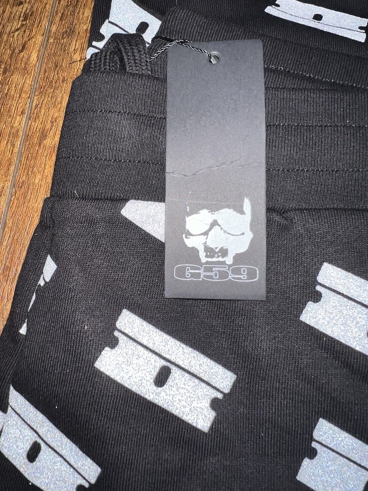 Elevate your style with these G59 sweatpants—super comfy with an edgy razor blade design! The black and grey combo looks sleek, and the elastic waist ensures a perfect fit. Made from a durable poly-cotton blend, they’re great for workouts or casual wear. Plus, the pockets are super handy. Love the relaxed fit and bold look—definitely stands out!