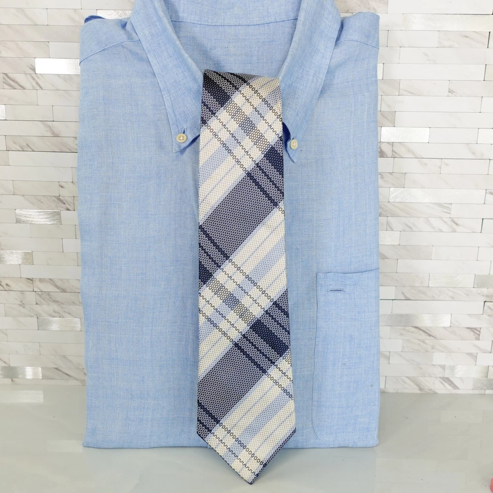SUIT SELECT Men's Navy White Plaid Checkered Check Necktie 100% Silk Embroidered Neck Tie Pointed, Regular width & Length Made of 100% Silk Handmade Dry Clean Only Embroidered Plaid Gingham Checkered Check Pattern Excellent Condition 🌱🌿 Proud to be a member of Eco - Packaging Alliance & utilize a sustainable packaging. 🌳 🇺🇸 USA - New York City Seller 🇺🇸 Ready to Ship items out Same or Next Business with tracking confirmation. Additional Necktie for $2 shipment for Domestic. Happy to bulk sell and combine shipping on multiple purchases won. Worldwide shipping available. Proudly posting 100+ New Listings everyday, 7 Days a week. Add me as a Saved Seller & Check back daily Items taken in photography - All colors bright & vibrant, actual item may differ in color in monitor or mobile screen & every individual may see colors differently. Kindly review all photos, conditions, & flaws if indicated. I'm grateful for offers & willing to negotiate so you can have these items. If you have questions, don't hesitate to message me. Thank You Exclusion: Shirt is not included for sale C0562-2-CY7-23