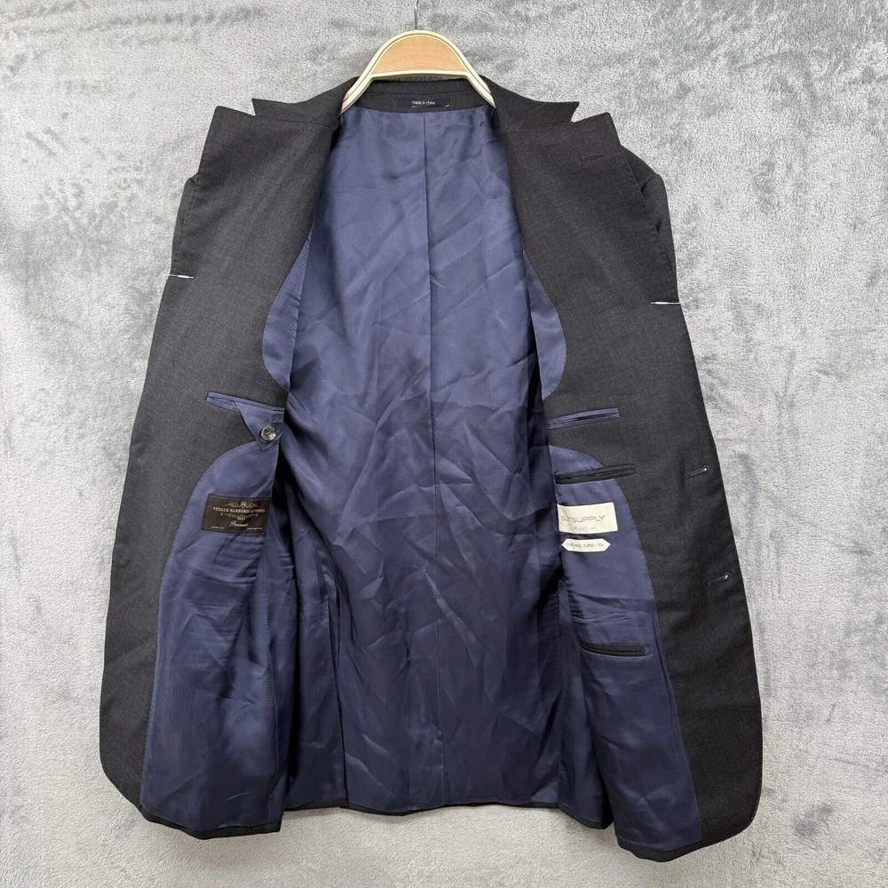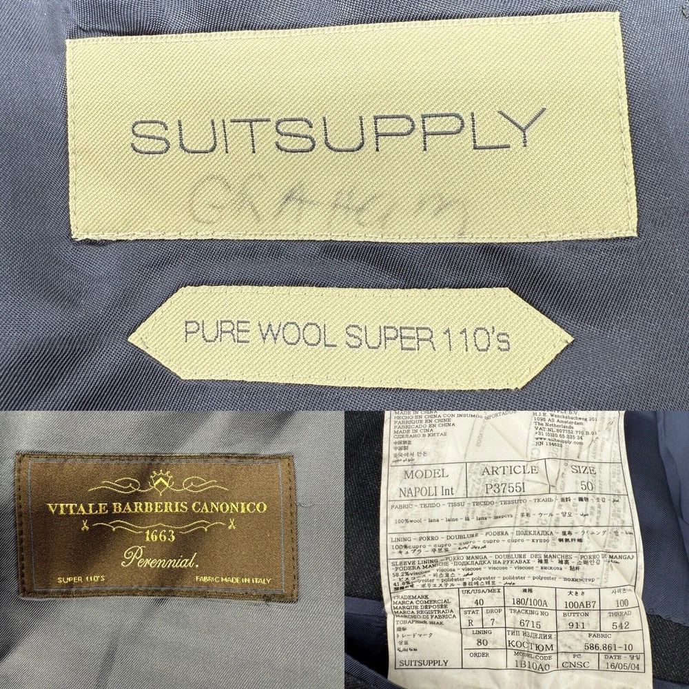 Suit Supply Blazer Sport Coat Men's 40R Gray Napoli Vitale Barberis Super 110s Great condition. No stains, rips or tears. Name written on inside, see pictures. Measurements: See Pictures Material: See Pictures *We have many similar items in stock. Please check out our store for more. ***Color variation might vary slightly due to camera and lighting*** If you have questions, please message me. I answer INSTANTLY! Fast shipping available. I do most of the shipping within 1 business day! And ship via USPS with a tracking number emailed to you. Thanks for Shopping.