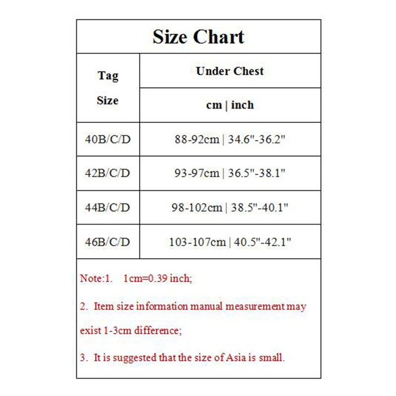 Description Feature: 100% Brand new and high quality Style: fashion,sexy Size: 40-46B/C/D Gender: women Color: white,black,purple,nude,pink,blue Material: polyester Fabric: lace Thickness: thin Pattern: floral Season: all season Garment:Hand washing,line dry. Package:1pcs Bra Note: 1.Due to the light and screen difference, the item's color may be slightly different from the pictures. Please understand. 2.Please allow 2-3% error due to manual measurement.Please make sure you don’t mind before you mid. 3.Size doesn’t fit all.Please carefully check size chart and select the size based on your real size.