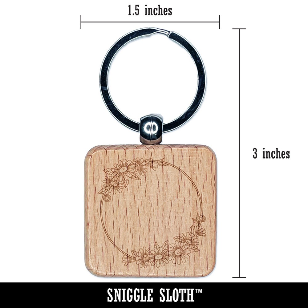 Summer Daisy Flower Engraved Wood Square Keychain Tag Charm