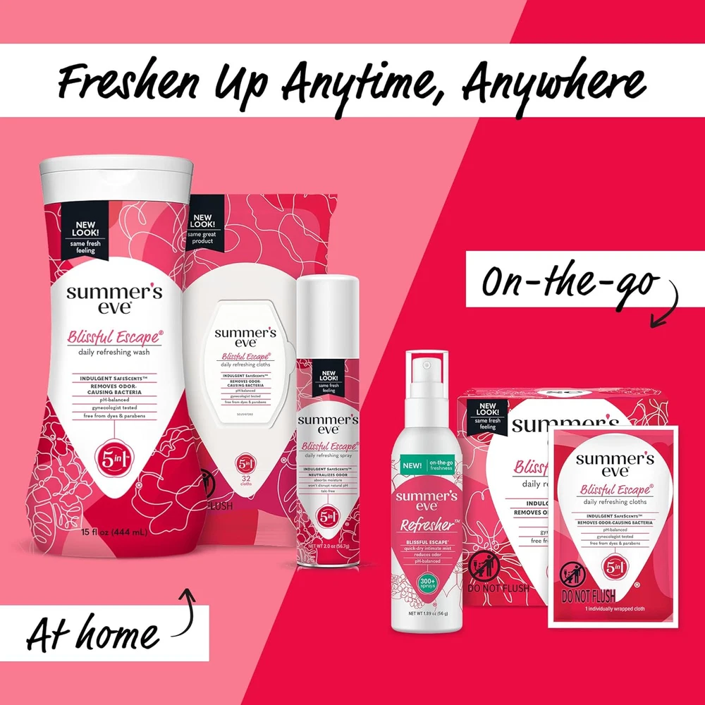 Store New Arrivals Add to Favorite View Feedback Contact Summer'S Eve Blissful Escape Daily Refreshing All over Feminine Body Wash, Removes Odor, Feminine Wash Ph Balanced, 15 Fl Oz (Pack of 3) Description Item model number bergw-1016 Item Form Wash Product Dimensions 3.25 x 7.9 x 7.8 inches; 7.3 ounces Country of Origin USA Material Feature Natural Skin Type All, Sensitive, Normal Manufacturer Prestige Consumer Healthcare Scent Blissful Escape Brand Summer's Eve Size 15 Fl Oz (Pack of 3) Summer’s Eve Blissful Escape Daily Refreshing Feminine Wash removes odor-causing bacteria for all day freshness During your shower enjoy an intimate care and feminine body wash that’s a refreshing, cleansing experience for under your arms, breasts, and even in your intimate area, so you can take on anything Blissful Escape indulgent SafeScent is inspired by fruit, florals and vibrant berries and gentle enough for your most delicate skin Summer’s Eve daily refreshing intimate wash is gynecologist tested, free from dyes and parabens, and the product is not tested on animals Uniquely formulated and pH balanced to match the intimate area’s natural chemistry Contains 3 bottles of Summer's Eve Blissful Escape Daily Refreshing Feminine Wash, 15 fl oz each A refreshing, cleansing experience for your intimate area so you can take on anything. Summer's Eve Refreshing feminine care products comes in a variety of indulgent SafeScents letting you experience that unique, everyday Summer’s Eve readiness. Summer's Eve Feminine Body Wash is created for your most intimate areas to gently cleanse away the bacteria that can cause odor. Uniquely formulated and pH-balanced to match your body's natural chemistry. All Summer's Eve feminine hygiene products, along with every unique scent, are gynecologist tested to ensure they are safe, even for sensitive skin. Blissful Escape indulgent SafeScent is inspired by fruit, florals and vibrant berries and refreshing enough for your most delicate skin. That’s why millions of women trust our expansive range of gynecologist-tested cleansing and care. Our wide variety of products are made for everybody – whether you’re at home or on the go, want to bask in fragrant lusciousness or no scent at all or want ultra-Refreshing or high performance. With every Summer’s Eve product you use, know that We See You, We Get You, We Got You. Sunburn Alert: This product contains an alpha hydroxy acid (AHA) that may increase your skin's sensitivity to the sun and particularly the possibility of sunburn. Use a sunscreen, wear protective clothing, and limit sun exposure while using this product and for a week afterwards. ABOUT US We offer the best prices around on high quality products. Our E-store includes media such as books, movies, music and games while offering electronics, toys, sporting apparel, clothing, tools, general home, garden items and more. SHIPPING We are always working hard to ensure your package arrives as soon as possible. Please understand that some factors like weather, high postal traffic, and the performance of shipping companies are outside of our control. We offer free shipping to the lower 48 states and ship within 2 business days of payment, usually sooner. We do not accept P.O. Boxes. Please provide a physical address. RETURNS We offer a 30-Day Return Policy on items which you are not completely satisfied with. You have the option for a full-refund or an exchange of the item. No returns are available on items shipped outside of the USA. PAYMENT We accept PayPal. CONTACT US This page content is yet to come Please ad us to your favorite seller and visit again later Thank You CUSTOMER SATISFACTION We try our very best to make sure every customer is completely satisfied. If there's a problem, message us! We're happy to help.