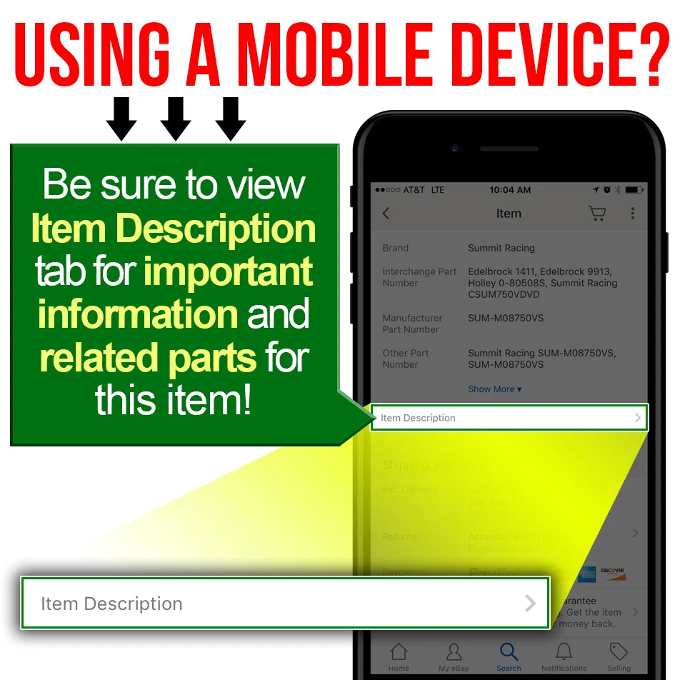 Cam and Lifters, Hydraulic Flat Tappet, Advertised Duration 303/303, Lift .488/.488, Chevy, Small Block, Kit. Please Click on the "See full description" link for additional details about this item. Thank you, Summit Racing Equipment. The World's Speed Shop Since 1968 #SummitRacing Summit Racing Part Number : SUM-K1106 Please hover mouse to enlarge image Summit K1106 Cam and Lifters Hydraulic SBC 327/350/400 Advertised Duration 292 int./292 exh. Advertised Exhaust Duration 292 Advertised Intake Duration 292 Assembly Lubricant Included Yes Basic Operating RPM Range 2,800-6,300 Cam Style Hydraulic flat tappet Camshaft Manufacturers Description Fair-lopey idle, mid-upper rpm power. Requires 9.5:1 and higher compression, 2,800+ stall, and gearing. Computer-Controlled Compatible No Duration at 050 inch Lift 234 int./234 exh. Exhaust Duration at 050 inch Lift 234 Exhaust Valve Lift with Factory Rocker Arm Ratio 0.488 in. Gaskets Included No Intake Duration at 050 inch Lift 234 Intake Valve Lift with Factory Rocker Arm Ratio 0.488 in. Lifter Style Hydraulic flat tappet Lifters Included Yes Lobe Separation (degrees) 114 Locks Included No Pushrods Included No Quantity Sold as a kit. Retainers Included No Rocker Arms Included No Timing Chain and Gears Included No Valve Lift with Factory Rocker Arm Ratio 0.488 int./0.488 exh. Valve Springs Included No Valve Springs Required Yes Valve Stem Seals Included No Image is a representation of this item. Actual item may vary. CALIFORNIA RESIDENTS: Due to C.A.R.B. (California Air Resources Board) regulations, once your order is placed you will be required to answer certain questions pertaining to the application of this product. Please be aware that additional contact from Summit Racing will take place within 24 hours of your order that will require your response before your order is released.