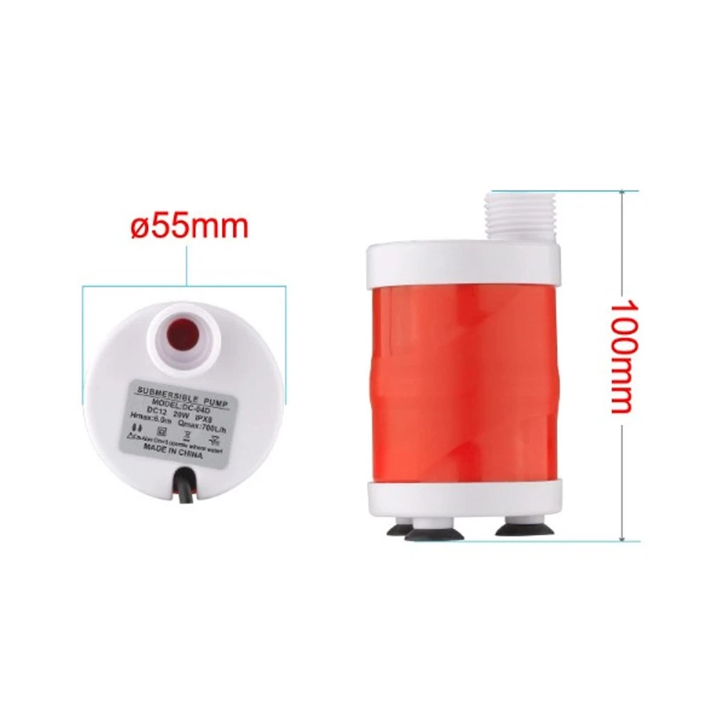 Specification: Item Type: Pump Model: DC-04D Material: ABS Voltage: DC 12V Power: 20W Maximum : 700L/h Maximum Discharge : Approx. 6m / 19.69ft Connector: Approx. 19mm / 0.75in, 10mm / 0.39in Class: IPX8 Package List: 1 x Pump 3 x Foot Pad 1 x Washer 2 x Connector Pump: Works under DC 12V, the 20W pump enables 700L/h maximum and 6m maximum discharge . Wide Application: Can be widely applied to fish , water supply, outdoor camping, travel, garden spring, watering, etc. Working: 3pcs foot pad are also included in the set, which can avoid resonance, reduce noise and prevent slipping. Premium Material: Using premium ABS material with a sturdy structure, the has great durability for long use. Easy to Install: Light in weight and compact in size, has 19mm and 10mm connectors to largely simplify the installation.