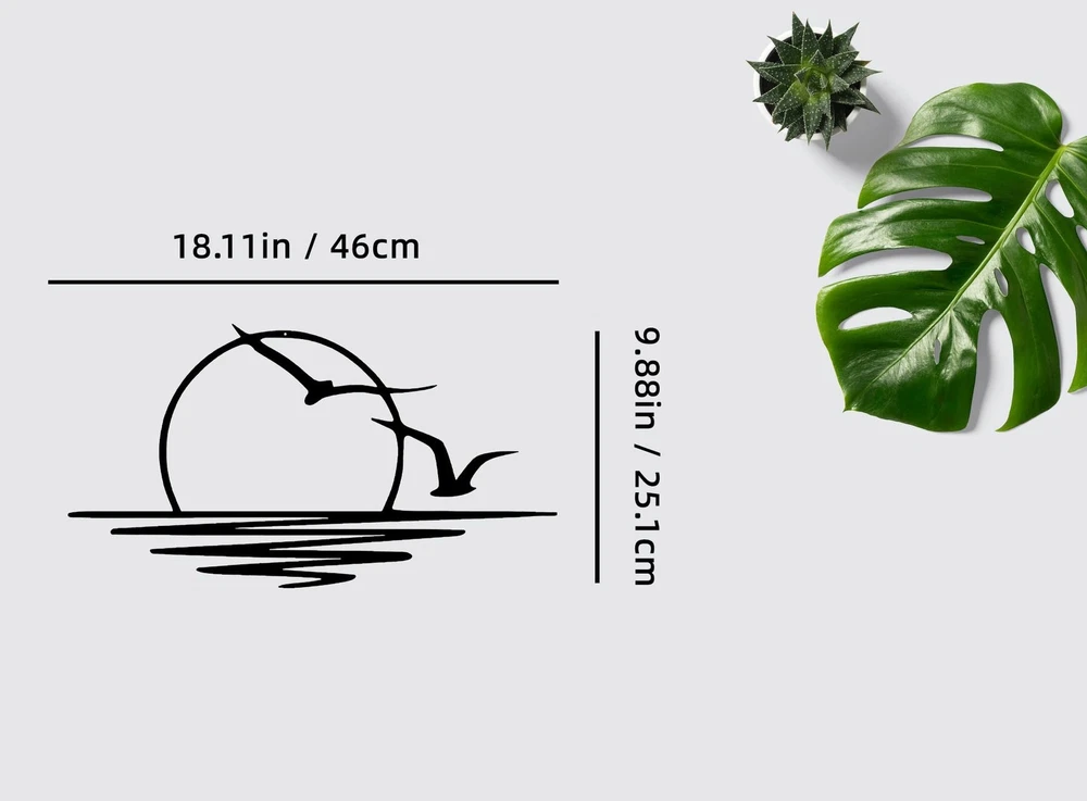 Sun Metal Wall Art Abstract Sunset with Seagulls Decor Minimalist EXQUISITE DESIGN: the tropical wall decor incorporates an appealing sunrise design that exudes calm and serenity; This piece can be applied in a wide range of scenarios such as decorating your living room, bedroom, or office space; The sunrise elements in the design add a touch of nature, creating a tranquil atmosphere in the room DURABLE MATERIAL: The metal wall art is made of painted metal material, not easy to break, corrode or fade, bad smell and to use, the side and edge contact is smooth, burr or sawdust WATER & FADE RESISTANCE: Powder coated iron are more durable, high-grade black coating makes it not easily fade,to protect against rust or damage, making them suitable for indoor or outdoor use. EASY TO HANG: The black tropical themed metal home decoration with hollowed design is lightweight to hold, and you can directly hang it with nails, easy to install and convenient to remove INDOOR & OUTDOOR DECOR: This iron-crafted wall art is a versatile piece that is suitable for both indoor and outdoor embellishment. Whether positioned on your patio, in your living room, bedroom, bathroom, or kitchen, it injects a stimulating tropical vibe Metal sunset with seagulls decorative wall hanging art sculpture 1. Easy to hang Metal wall art is predrilled with holes,and you can use some nails (not included) to fix it on the wall, which is convenient and easy. 2.Wide usages The decorative sign is nice for decorating your home walls and mantels as well as outside, suitable for front doors,patio, eaves, pool areas, barns, workshops, gates, and more, letting your home charming and eye-catching. 3. Water& Fade Resistance Powder coated iron are more durable,high-grade black coating makes it not easily fade,to protect against rust or damage, making them suitable for indoor or outdoor use. Specification Color: Black Size: 9.88 X 18.11 inch / 25.1 x 46 cm Material: Metal Type: Hanging Decoration Notice: Manual measurement, please allow slight errors on size. It may be slightly deformed due to transportation, please adjust by hand to the condition. There may be some pointed parts, please pay attention to keep away from children. Shipping We offer FREE shipping on all orders! We ship within Three business days of payment, usually sooner. We use a selection of shipping services such as UPS, FedEx, USPS etc. We only ship to the lower 48 states, no APO/FPO addresses or PO Boxes allowed. Local pickups and combined shipping options are not provided at this time. Return You can return a product for up to 30 days from the date you purchased it. Any product you return must be in the same condition you received it and in the original packaging. Please keep the receipt. Payment We accept payment by any of the following methods: PayPal Please pay as soon as possible after winning an auction, as that will allow us to post your item to you sooner! Feedback Customer satisfaction is very important to us. If you have any problem with your order, please contact us and we will do our best to make you satisfied. Contact Us If you have any queries, please contact us via ebay. We usually respond within 24 hours on weekdays. Please visit our eBay store to check out other items for sale! Thank you for shopping at our store.
